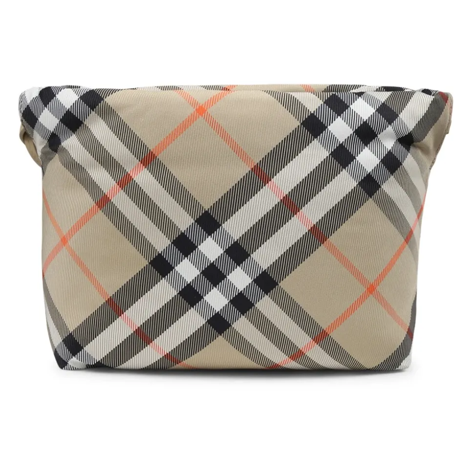 Geef je stijl een boost met deze beige tas van Burberry, met een licht gewatteerd ontwerp en het iconische Vintage Check-patroon. Perfect voor het meenemen van essentiële spullen dankzij de interne magnetische knoop en schouderriem. Belangrijkste kenmerken: Beige | Polyamide | Interne magnetische knoop | Schouderriem | Licht gewatteerd ontwerp | Vintage Check-patroon | Afmetingen en pasvorm: 22cm x 18cm x 5cm | Samenstelling en onderhoud: 100% Polyamide