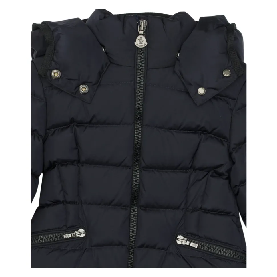 De Moncler Charpal Lange Donsjas combineert lichtgewicht donsisolatie met een gestroomlijnd, gewatteerd silhouet. De jas is voorzien van een afneembare capuchon en praktische ritszakken voor betrouwbare bescherming tegen de kou. Belangrijkste kenmerken: Blauw | Polyamide | Donsisolatie | Lichtgewicht warmte | Afneembare capuchon | Ritszakken aan de zijkant | Dubbele ritssluiting | Elastische manchetten | Gewatteerde constructie | Lang silhouet | Logopatch op de mouw | Afneembare capuchon detail | Samenstelling & onderhoud: Buitenstof: 100% polyamide | Voering: 100% polyamide | Vulling: 90% dons, 10% veren | Machinewas op 30°C.