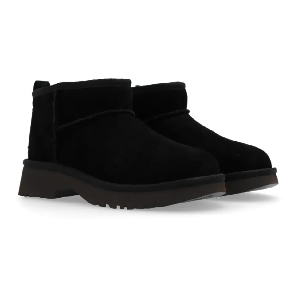 De UGG Classic Ultra Mini New Heights combineert een laag uitgesneden silhouet van suède met een zachte UGGplush-voering voor warme, dagelijkse winterse slijtage. Het ontwerp combineert een minimalistisch profiel met een eenvoudig aan/uit-lus aan de achterkant en een gripvaste platformzool. Belangrijkste kenmerken: Zwart | Suède | Warme, zachte voering voor thermisch comfort | Stabiele platformzool met grip | Treklus aan de achterkant voor eenvoudig aan- en uittrekken | UGGplush-binnenzool en schuimvoetbed voor comfort | Uitgesproken profiel voor verbeterde grip | Laag uitgesneden, mini-silhouet | Minimalistisch ontwerp | Discrete UGG-logopatch | Treklus aan de achterkant | Afmetingen en pasvorm: Zoolhoogte: 2,5 cm | Zoolhoogte op het hoogste punt: 4 cm | Samenstelling en verzorging: Bovenwerk van suède | UGGplush-voering en binnenzool (wol/lyocell-mix) | Buitenzool van Sugarcane EVA