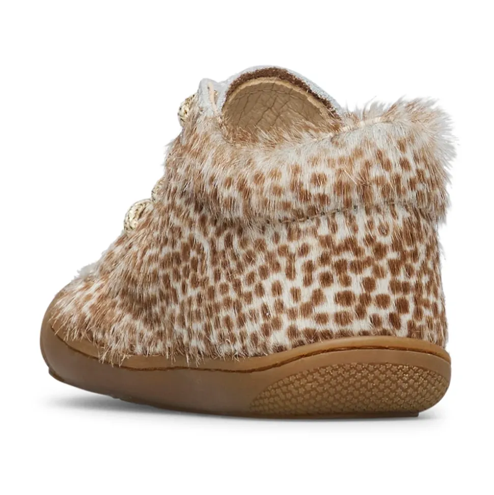 Naturino Cocoon eerste-stap schoenen van suède combineren een contrasterend stippenpatroon met gouden lurex veters en een versterkte antislipzool om veilige eerste stapjes te ondersteunen. Belangrijkste kenmerken: Bruin | Wit bruin | Suède | Antislip rubberen zool | Versterkte neus | Vetersluiting | Gestructureerde hiel | Gewatteerde kraag | Contrasterend stippenpatroon | Gouden lurex veters | Samenstelling & verzorging: Suède | Leer (voering) | Leer (binnenzool) | Rubber (zool)