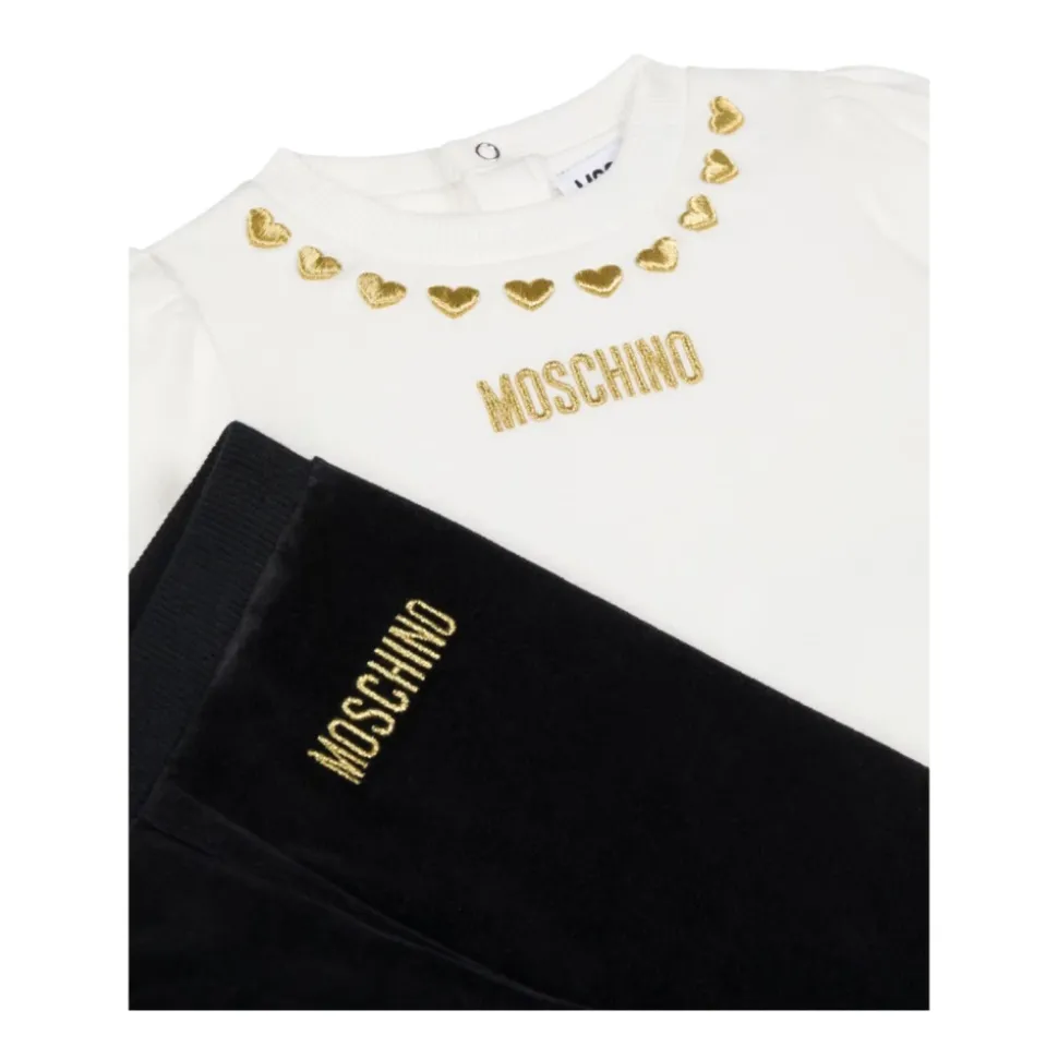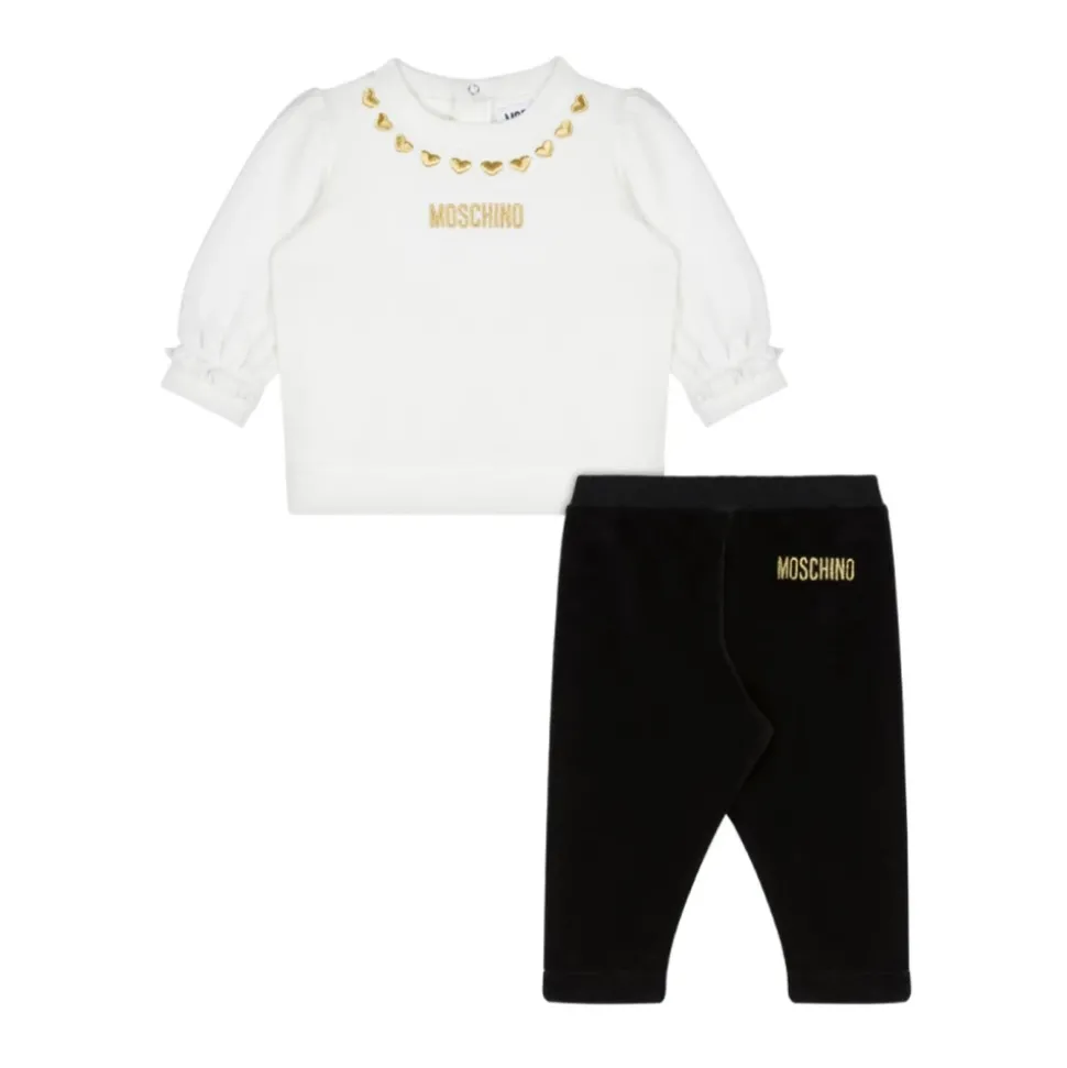 Geef je kleine meid een vleugje stijl en comfort met de Moschino Kids set, gemaakt van zacht katoen fleece. De bijpassende broek heeft een elastische tailleband en elastische enkels voor een veilige en comfortabele pasvorm.
