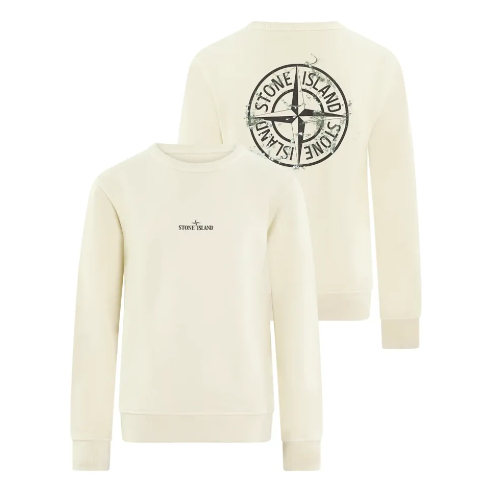 Stone Island Kids Compasslogo Sweater in Beige, maat 2YR. Valt normaal: bestel je eigen maat.