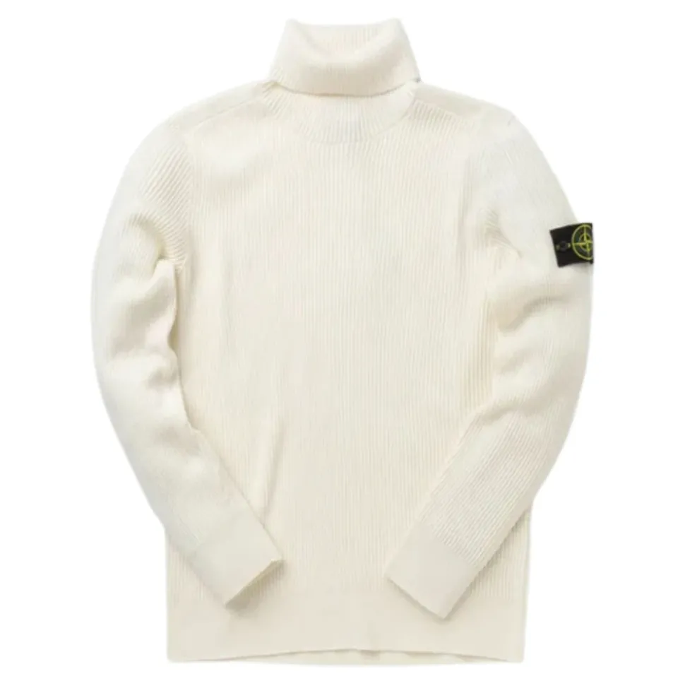 Ontdek de Stone Island Crème Ribgebreide Trui met Hoge Hals, een stijlvol gebreid kledingstuk met een hoge hals en lange mouwen, perfect voor veelzijdige laagjes. Belangrijkste kenmerken: Crème | Beige | Wol | Hoge hals | Lange mouwen | Zijlogo patch | Samenstelling en onderhoud: 100% wol | Uitsluitend chemisch reinigen.