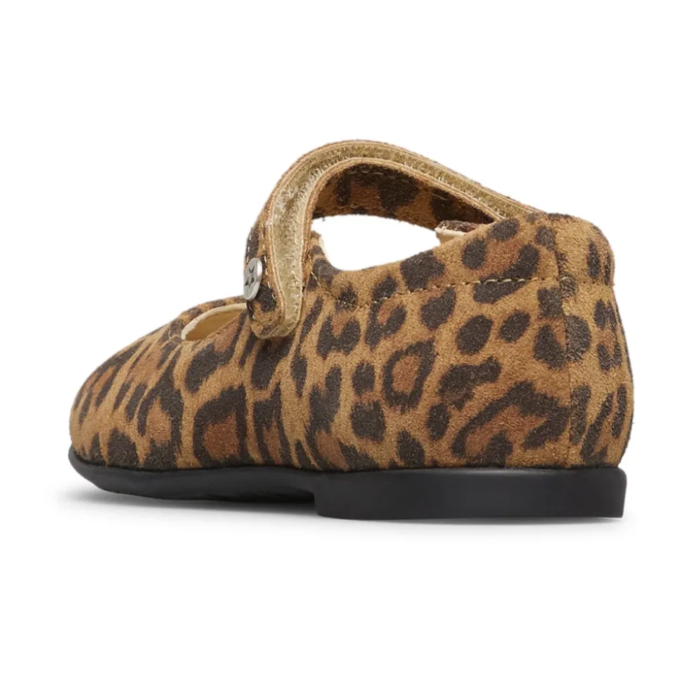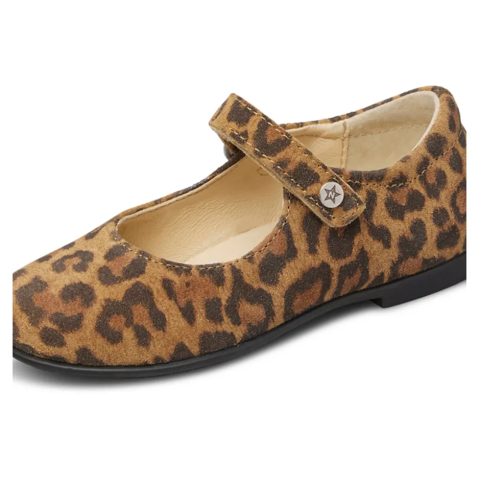De Naturino Darling Ballerina combineert zacht suède met een opvallend bovenwerk met dierenprint en een veilige band over de wreef voor geklede, alledaagse kleding. Belangrijkste kenmerken: Bruin | Suède | Leren voering | Leren binnenzool | Rubberen buitenzool | Bovenwerk met dierenprint | Sluiting met band over de wreef | Samenstelling & verzorging: Suède (bovenwerk) | Leer (voering, binnenzool) | Rubber (buitenzool)
