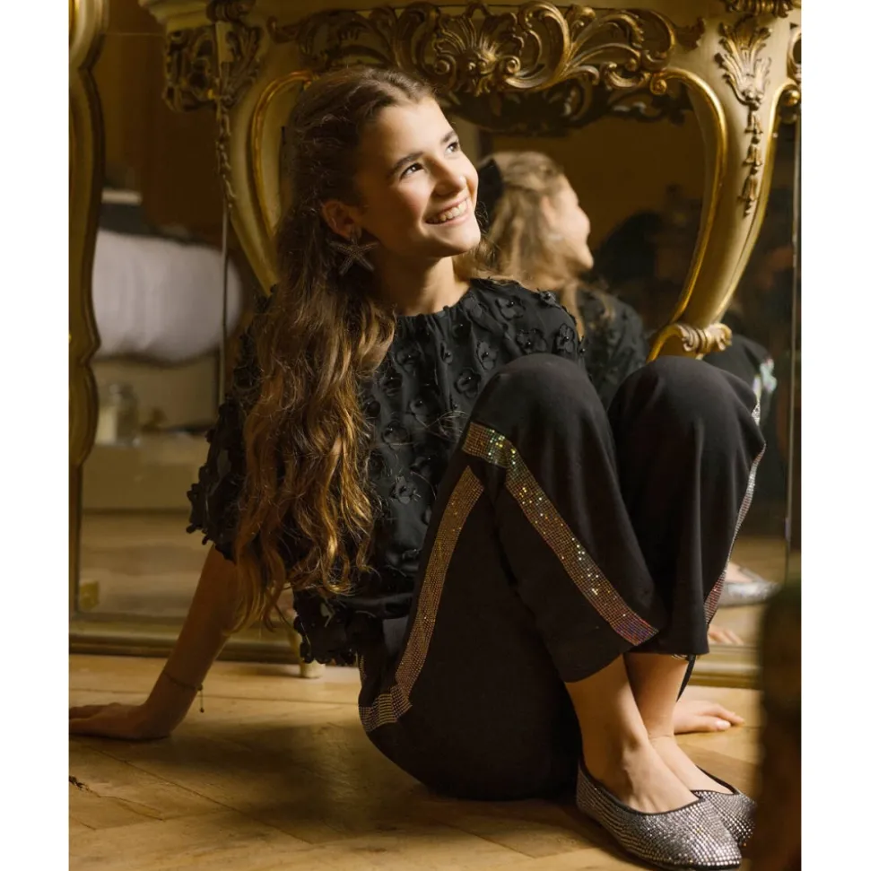 Aaiko DELANY Flower PES Top — een blouse met korte mouwen en een bloemenmotief, ontworpen voor dagelijks gebruik en eenvoudige styling. Belangrijkste kenmerken: Black | Zwart | Korte mouwen | Bloemenpatroon | Blouse silhouet