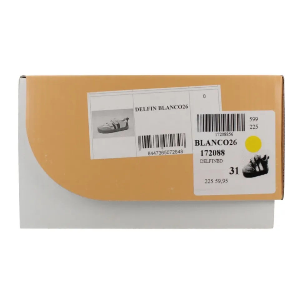 Blanditos by Crio’s DELFINBD is een sneaker met een laag profiel en een klittenbandsluiting voor gemakkelijk aan- en uittrekken. Het leren bovenwerk en de platte zool in barefoot-stijl bevorderen de natuurlijke beweging van de voet en het dagelijkse comfort. Belangrijkste kenmerken: Wit | Leer | Platte, dunne zool (barefoot / zero-drop) | Flexibele, lichtgewicht zool | Anti-slip rubberen buitenzool | Klittenbandsluiting | Uitneembare binnenzool | Gecementeerde constructie | Laag model | Ronde neus | Unicolor design | Samenstelling & onderhoud: Bovenkant: Leer | Voering & binnenzool: Leer | Buitenzool: Rubber | Constructie: Pegado (gecementeerd)