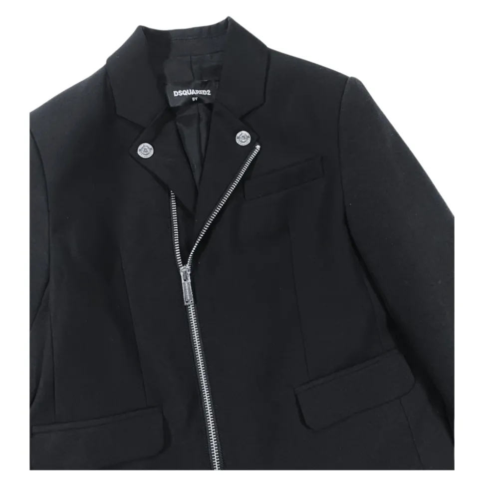De Dsquared2 Delnero Jacket combineert een gestructureerde revers met een praktische ritssluiting voor een getailleerde maar functionele buitenlaag. Ontworpen met meerdere zakken en schoudervulling voor een gepolijst silhouet. Belangrijkste kenmerken: Zwart | Wol | Ritssluiting | Twee klepzakken | Een borstzak | Reverskraag | Schoudervulling detail | Twee rugsplitten | Klepzakken | Afmetingen en pasvorm: Regular fit | Samenstelling en verzorging: 40% wol, 26% polyester, 4% elastaan | Voering: 84% katoen, 16% polyester