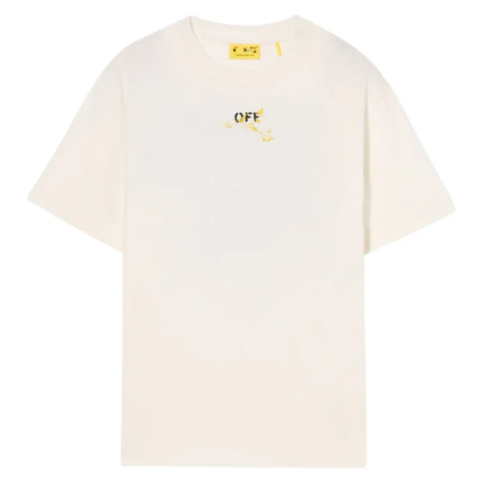 Off-White Diags Splat Tee S/S is een katoenen T-shirt dat opvalt door de opvallende ‘splat’ graphic op de achterkant. Ontworpen voor casual streetwear en gemakkelijk te combineren met jeans of laagjeslooks. Belangrijkste kenmerken: Off white | Wit | Geel | Katoen | Ronde hals | Korte mouwen | Rechte zoom | ‘Splat’ graphic op de achterkant | Geribbelde afwerking | Afmetingen & pasvorm: Valt normaal qua maat | Samenstelling & verzorging: 100% katoen | Rib details: 100% katoen