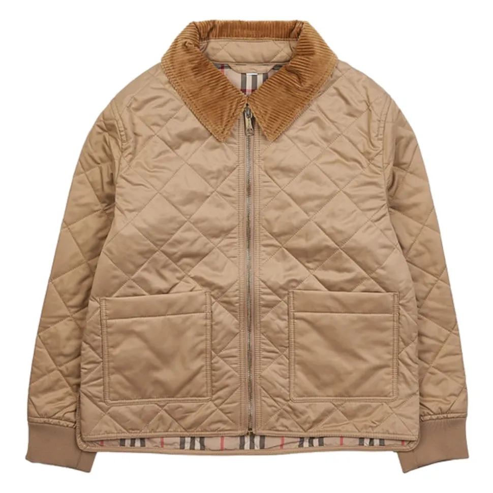Kleed je kleintje in stijl met het Burberry Diamond Gewatteerd Jasje, met een klassiek diamond gewatteerd design en een vintage ruitjesvoering voor een vleugje elegantie. Belangrijkste kenmerken: Beige | Polyester | Diamond gewatteerd design | Vintage ruitjesvoering | Geribbelde kraag | Ritssluiting aan de voorkant | Lange mouwen | Geribbelde manchetten | Twee zijzakken | Rechte zoom | Samenstelling en onderhoud: 100% Polyester