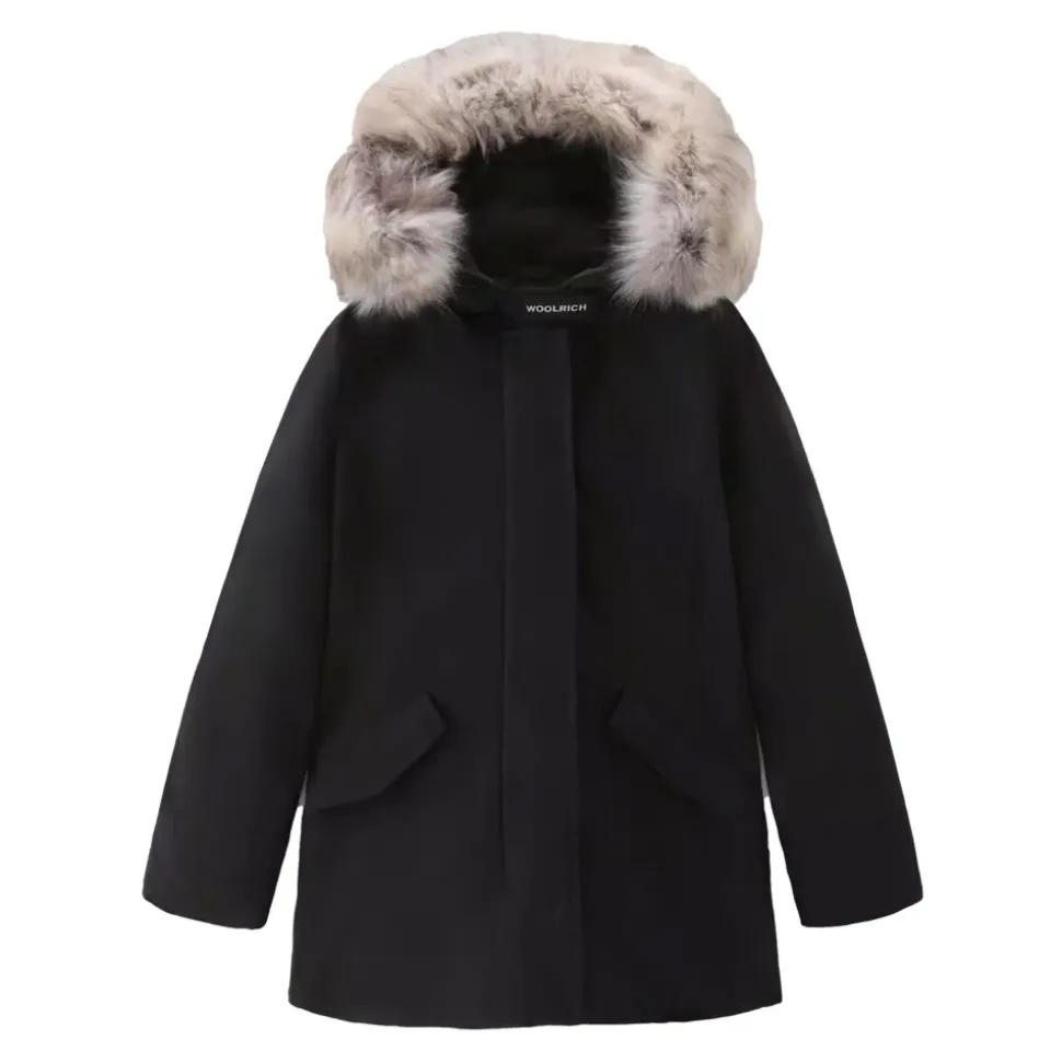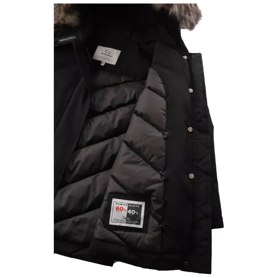 De Woolrich donsjas combineert een winddichte, met Teflon gecoate buitenstof met isolerend eendendons voor betrouwbare winterwarmte. Praktische details zijn onder meer een beschermende capuchon met een verwijderbaar inzetstuk van bont en veilige diagonale zakken. Belangrijkste kenmerken: Zwart | Nero | Katoen | Waterafstotende afwerking | Winddicht | Met Teflon gecoat | RDS-gecertificeerde donsisolatie | Verborgen ritssluiting met drukknoopsluiting | Beschermende capuchon met verwijderbaar inzetstuk van bont | Diagonale klepzakken | Geribbelde binnenmanchetten | Capuchon silhouet | Afneembare bontrand | Diagonaal zakdetail | Verborgen sluiting | Samenstelling & verzorging: 60% Katoen | 40% Polyamide | 100% Polyester | 70% Grijs eendendons | 30% Veer | 100% Wasbeerbont | Machinewas op 30°C. Niet strijken. Niet wassen met lichte kleuren. Geen bleekmiddel gebruiken.