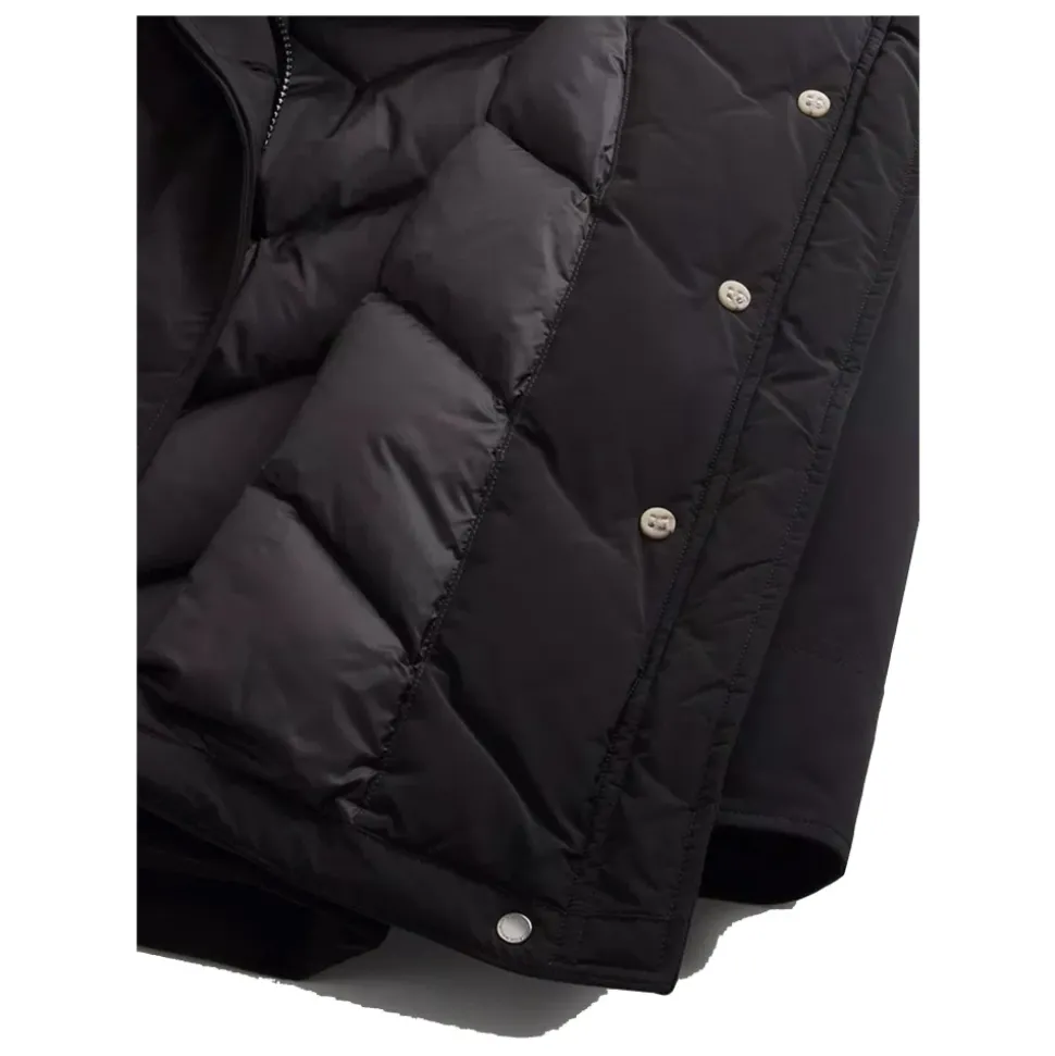 Woolrich donzen jas in Ramar-stof biedt winddichte, waterafstotende bescherming met lichtgewicht, isolerende warmte. De jas heeft een afneembare bontinzet op de capuchon en praktische sluitingen voor dagelijks gebruik in de winter. Belangrijkste kenmerken: Zwart | Nero | Ramar-stof | Waterafstotend (Teflon-coating) | Winddicht | RDS-gecertificeerde donsvulling | Verborgen ritssluiting en drukknoopsluiting | Geribbelde interne manchetten | Beschermende capuchon | Capuchon met afneembare bontinzet | Diagonale klepzakken | Zijlabel met merk | Samenstelling & onderhoud: 70% grijs eendendons | 30% veren | Ramar-stof | Teflon-coating | Volg de wasinstructies op het kledinglabel.