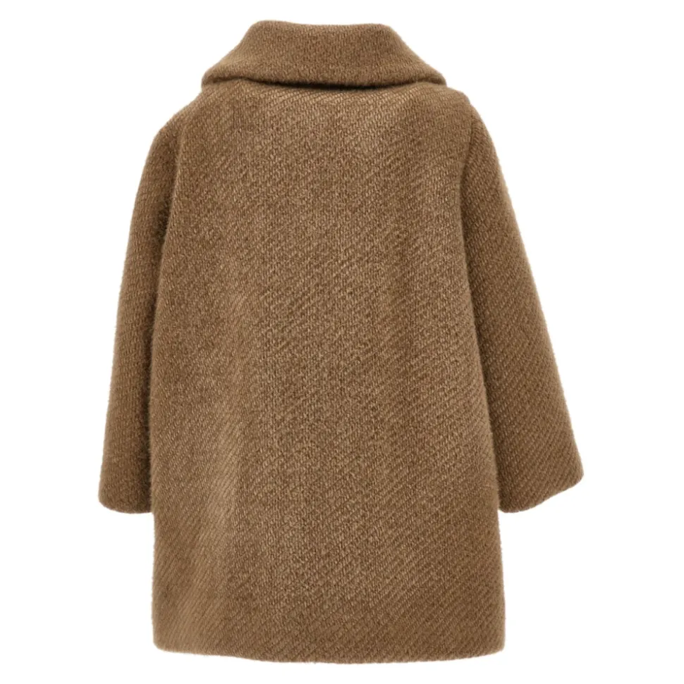 Monnalisa Double-breasted Jas met Knopen is een warme stoffen jas die een klassiek double-breasted silhouet combineert met verfijnde details, ideaal voor formele winterse gelegenheden. Belangrijkste kenmerken: Bruin | Polyester | Warm | Gevoerd | Double-breasted sluiting met decoratieve knopen | Opgestikte zakken aan de voorkant | Klassieke kraag | Relaxte mouwen | Stiksel detail | Samenstelling & onderhoud: Hoofdstof: 80% Polyester, 20% Polyamide | Hoofdvoering: 100% Polyester