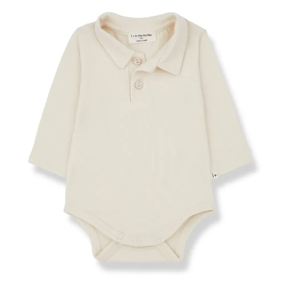 1 + IN THE FAMILY Aniol ecru katoenen romper voor kinderen, met lange mouwen, polokraag met knoopsluiting en knoopsluiting onderaan.