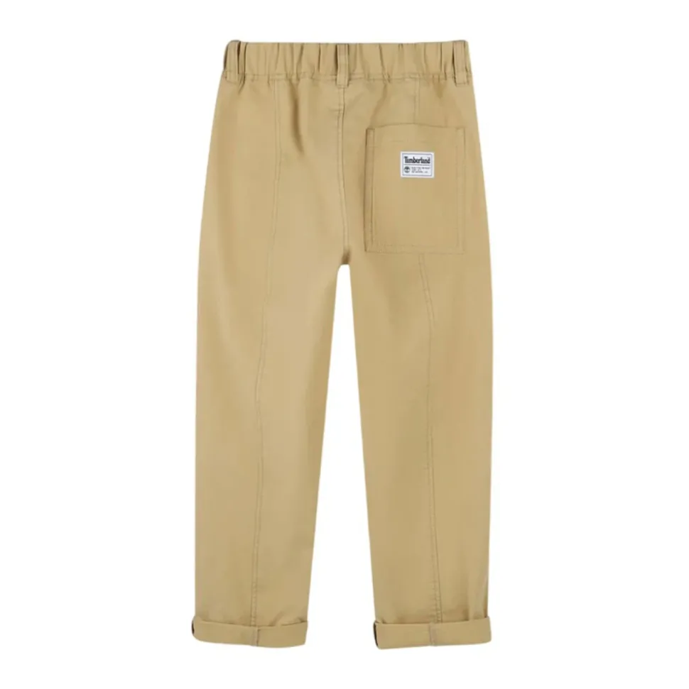 Elastische katoenen broek van TIMBERLAND voor jongens, met een elastische tailleband, riemlussen en een voorzak.