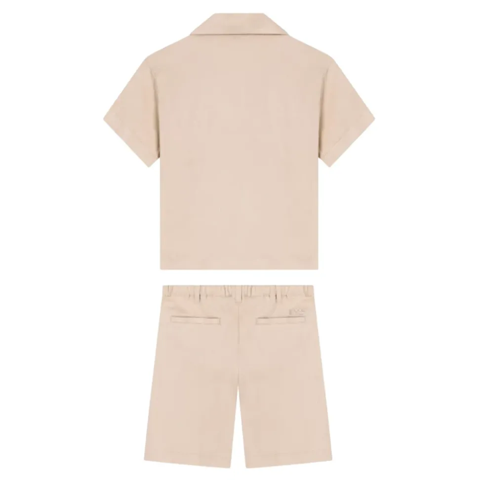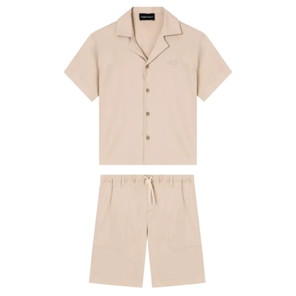 Elegant en verfijnde set voor kinderen van Emporio Armani, perfect voor zomerdagen. Het shirt met korte mouwen en boothals en het discrete geborduurde logo passen harmonieus bij de zachte en lichte bermuda shorts. Gemaakt van een mix van linnen, viscose en elasthaan, biedt deze set een fris, ademend en flexibel gevoel, ideaal voor warme en dynamische dagen. Elk detail is ontworpen om esthetiek en functionaliteit te combineren, waardoor het een praktische en verfijnde keuze is voor verschillende gelegenheden. Volg de wasinstructies op het label aan de binnenkant van het kledingstuk. Gemaakt in TUNISIA.