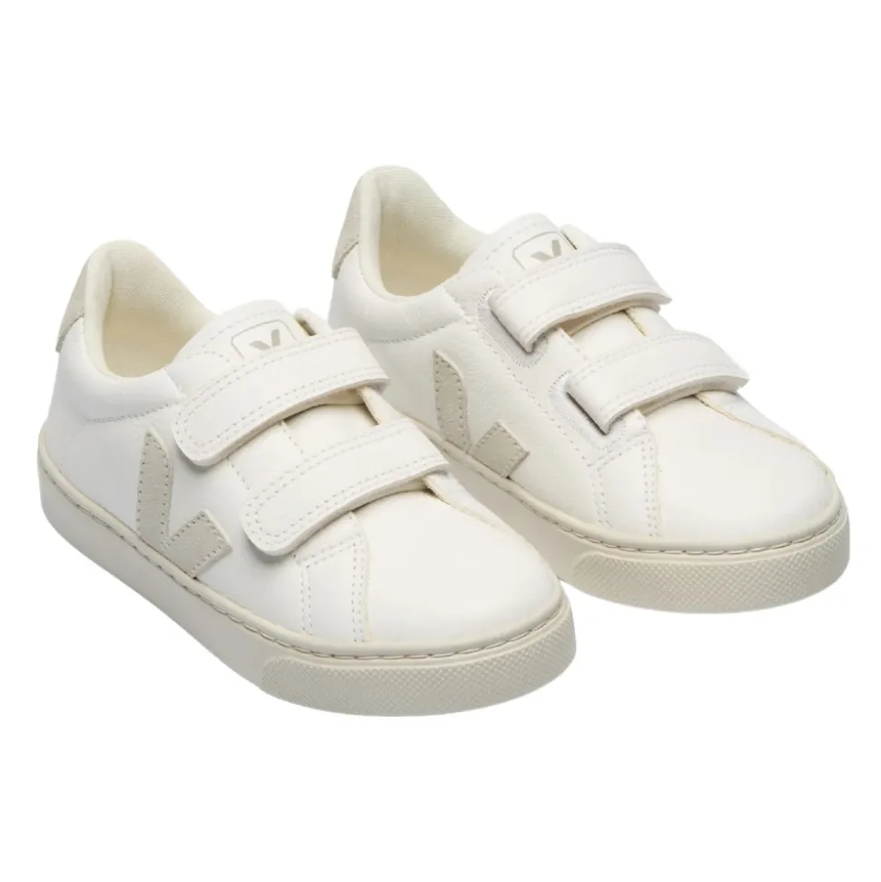 Veja Esplar Velcro Sneakers combineren een klassieke, laag uitgesneden stijl met een praktische klittenbandsluiting. Vervaardigd uit kalfsleer met contrasterende beige suède accenten, bieden ze een schoen die gemakkelijk aan en uit te trekken is met een strakke afwerking met logo-details. Belangrijkste kenmerken: Wit | Beige | Kalfsleer | Klittenbandsluiting aan de voorkant | Platte rubberen zool | Logo-binnenzool | Ronde neus | Contrasterende beige suède details | Tong met logo-opdruk | Contrasterende hielkap | Samenstelling & onderhoud: Buitenkant: 100% kalfsleer | Voering: 100% stof | Zool: 100% rubber | Veeg schoon met een vochtige doek. Niet in de wasmachine. Onderhoud glad leer met een speciale leerspray of crème; behandel suède inzetstukken met een droge borstel en gebruik een geschikte waterdichtmakende spray.