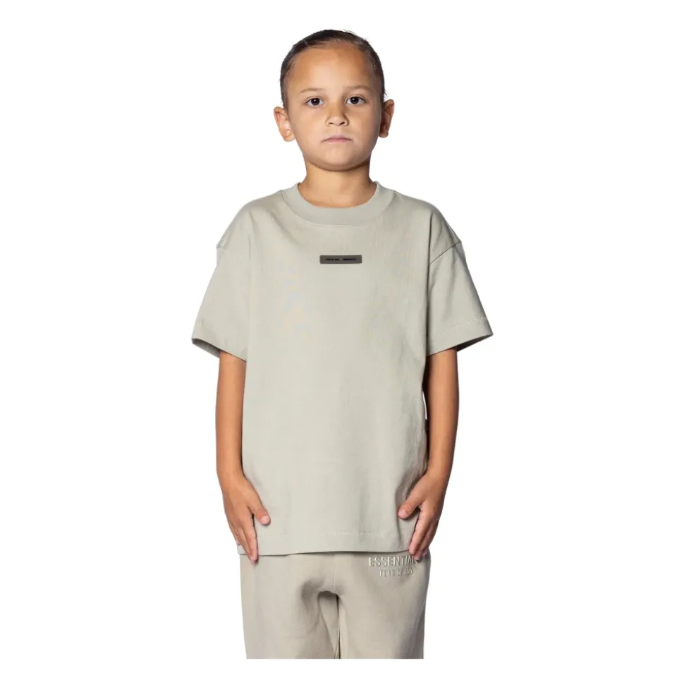 Ontdek de Fear Of God Kid’s Essentials Lounge T-Shirt in Abbey Stone, een verkleinde basic die dagelijks comfort biedt met een minimalistische esthetiek. Gemaakt van zacht katoenblend jersey, heeft het een relaxte pasvorm, verlaagde schouders, geribbelde halslijn en tonale Essentials-logo. De warme beige kleur past moeiteloos bij de volledige Essentials-palet. SKU: 785SP251466K.