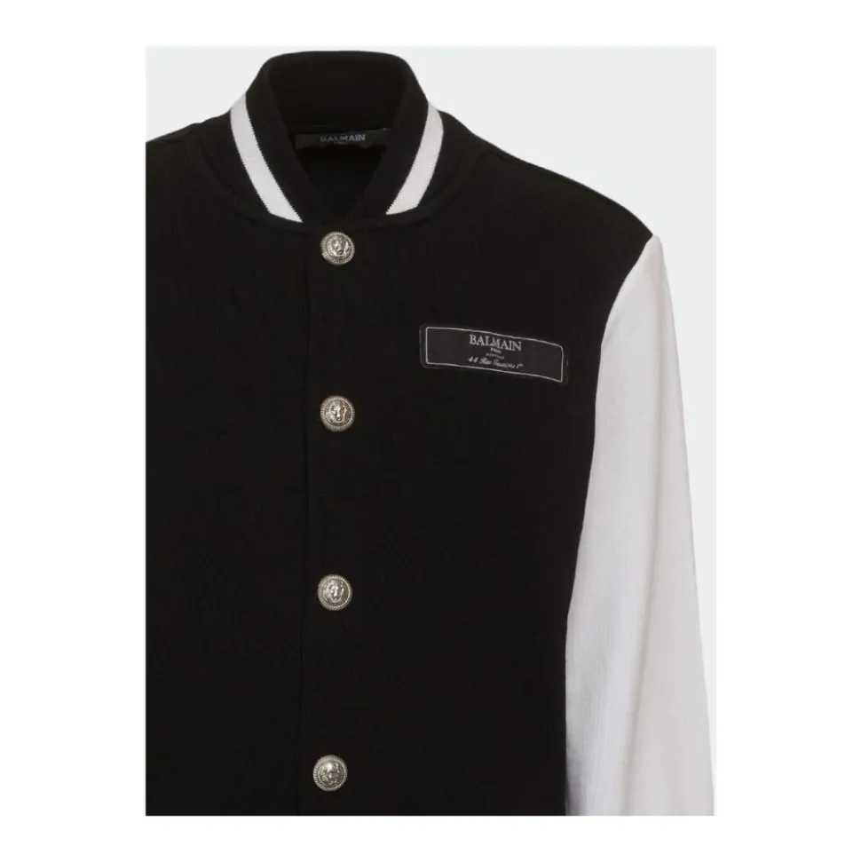 Balmain Felpa met logo applicatie is een katoenen jersey sweatshirt met een zwart logo applicatie en contrasterende ribboorden. Het ontwerp combineert een strak logo focuspunt met verhoogde knoopdetails voor een gepolijste casual look. Belangrijkste kenmerken: Zwart | Nero | Katoen | Sluiting met knopen aan de voorkant | Lange mouwen | Aangebracht logo aan de voorkant met hartdetail | Jersey textuur | Geribbelde kraag, manchetten en zoom in contrasterende kleur | Verhoogde knoopdetails | Samenstelling & verzorging: 100% katoen | Volg de wasvoorschriften op het label in het kledingstuk.