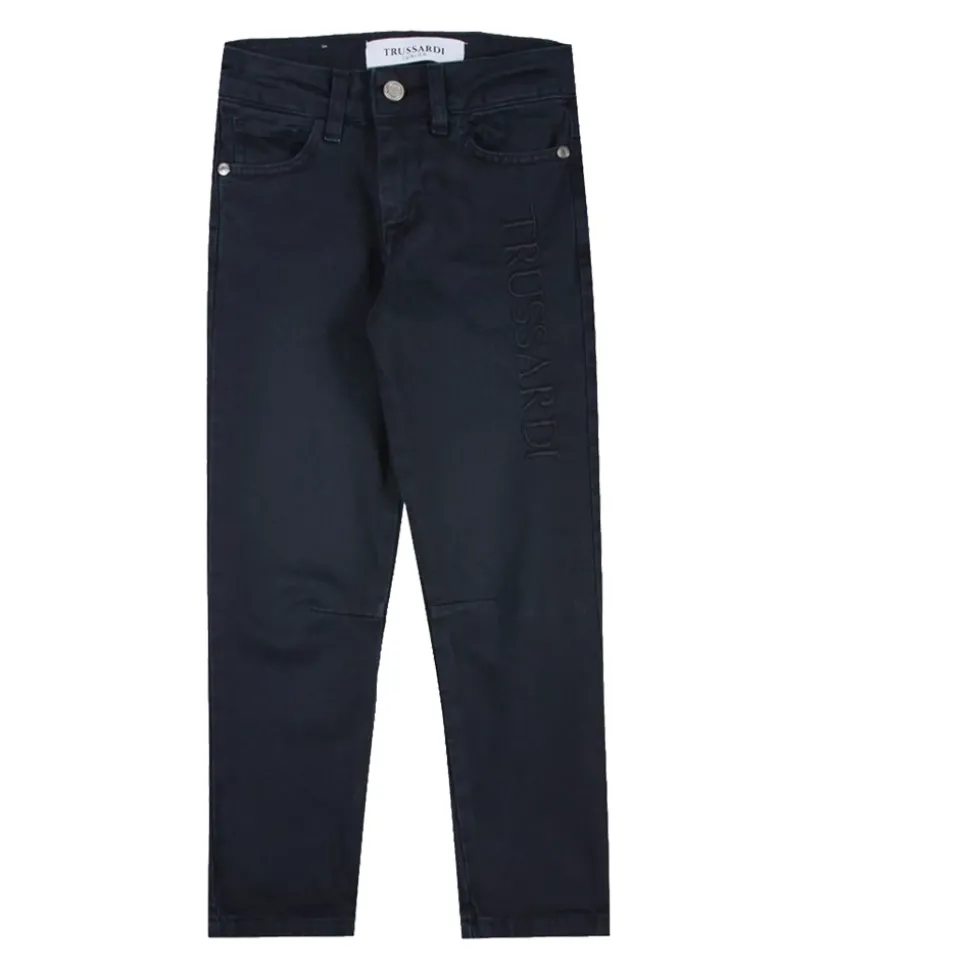 De Trussardi Five-pocket broek combineert een klassieke five-pocket styling met een knoop- en ritssluiting en een geborduurd logo voor een stijlvolle alledaagse look. Gemaakt in Italië van katoen met toegevoegd elastaan voor comfort en bewegingsvrijheid. Belangrijkste kenmerken: Blauw | Blu | Katoen | Lichte stretch | Five-pocket design | Knoop- en ritssluiting | Geborduurd logo aan de linkerkant | Effen kleur | Geborduurd logo detail | Gemaakt in Italië | Samenstelling & verzorging: 97% katoen | 3% elastaan | Machinewas op 30°C. Niet strijken. Niet wassen met lichtgekleurde items. Gebruik geen bleekmiddel.