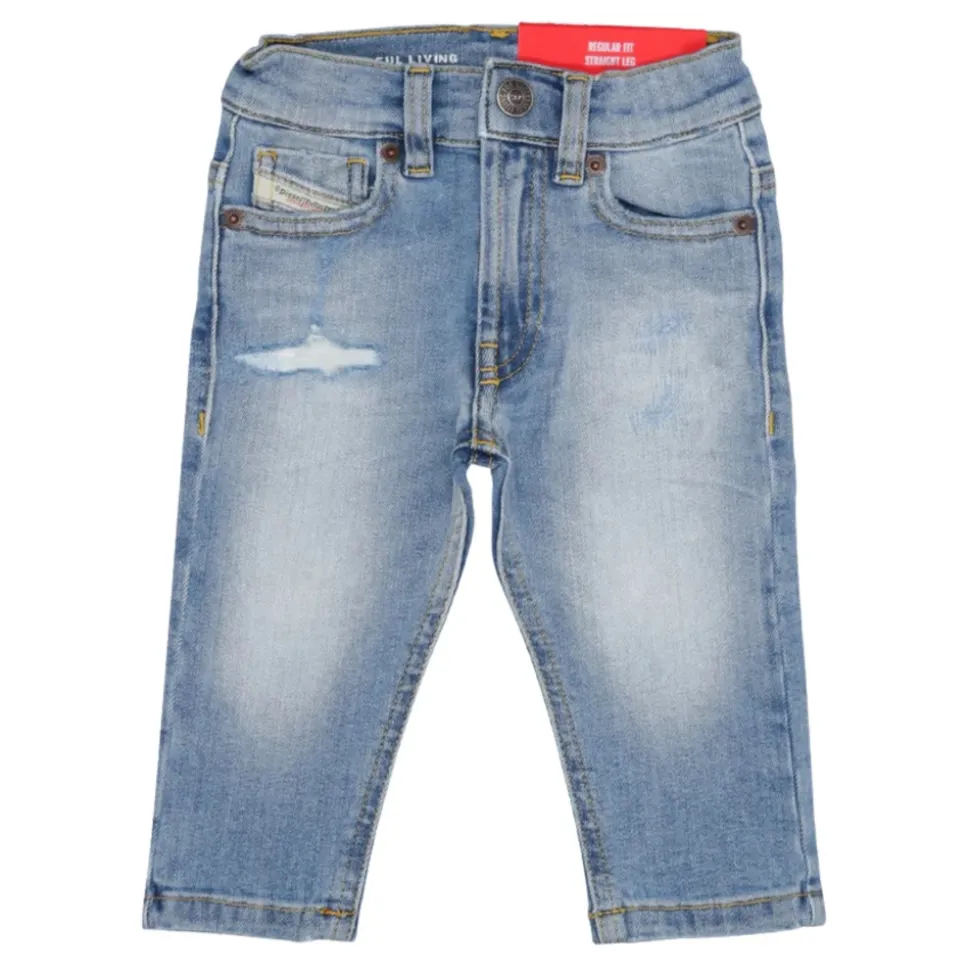 Diesel Five-Pocket Jeans combineren een medium-lichte wassing met een comfortabele elastische tailleband voor dagelijks gebruik. Imitatie distressed scheuren en een kenmerkende logopatch zorgen voor een casual, ingedragen look. Belangrijkste kenmerken: Blauw | Denim | Katoen | Elastische tailleband | Five-pocket design | Medium-lichte wassing | Imitatie distressed scheuren | Logopatch op de achterkant | Samenstelling & verzorging: 82% katoen | 16% polyester | 2% elastaan