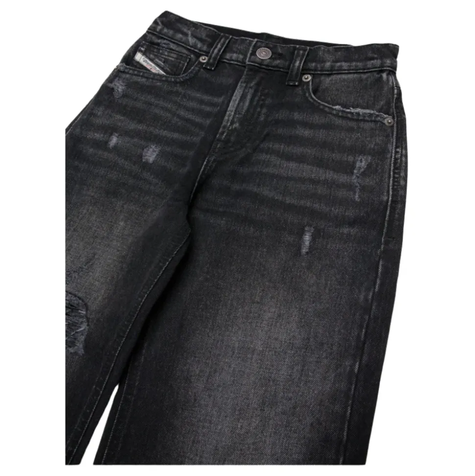 De Diesel Five-Pocket Straight Jeans combineren een zwart gewassen vintage-effect met whisker- en slijtage details voor een street-ready, alledaagse denim. Belangrijkste kenmerken: Zwart | Katoen | Verstelbare interne elastische tailleband met knopen | Knoop- en ritssluiting aan de voorkant | Five-pocket design | Vintage effect met contrasterende tinten en whiskers | Plaatselijke scheur op de knie met gerafelde randen | Slijtage details langs het been | Logo label achteraan | Afmetingen & pasvorm: Rechte pasvorm | Lage taille | Losse pasvorm | Samenstelling & verzorging: 100% Katoen