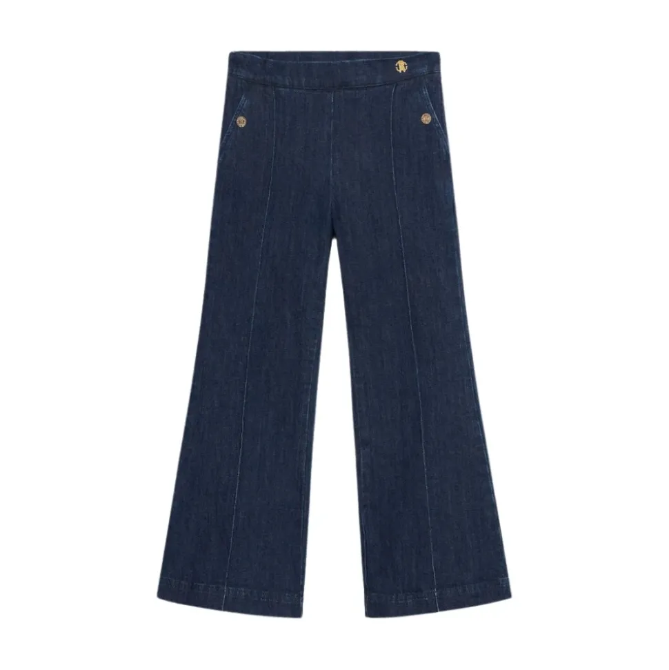 De Roberto Cavalli Florentine Flair Wide-Leg Jeans leveren een opvallend silhouet met wijde pijpen in premium indigo denim met goudkleurige knoopaccenten, ideaal voor verfijnde casual looks. Belangrijkste kenmerken: Blauw | Medium blauw | Denim | Silhouet met wijde pijpen | Goudkleurige knoopaccenten | Premium indigo denim afwerking | Afmetingen & pasvorm: Wijde pijpen