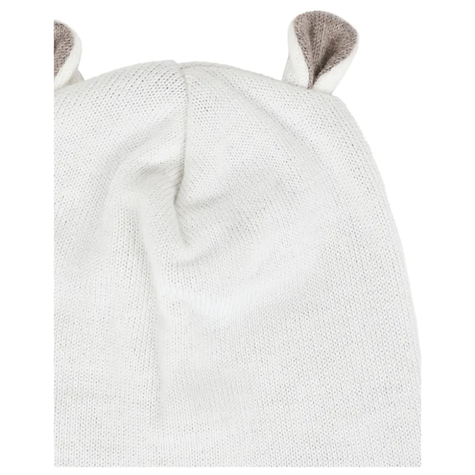Voeg een vleugje speelsheid toe aan de outfit van je kleintje met deze ivoorkleurige gebreide wollen muts van Little Bear. Gemaakt in Italië, deze muts heeft duifgrijze oren aan de bovenkant en is gemaakt van 100% wol. Alleen handwas.