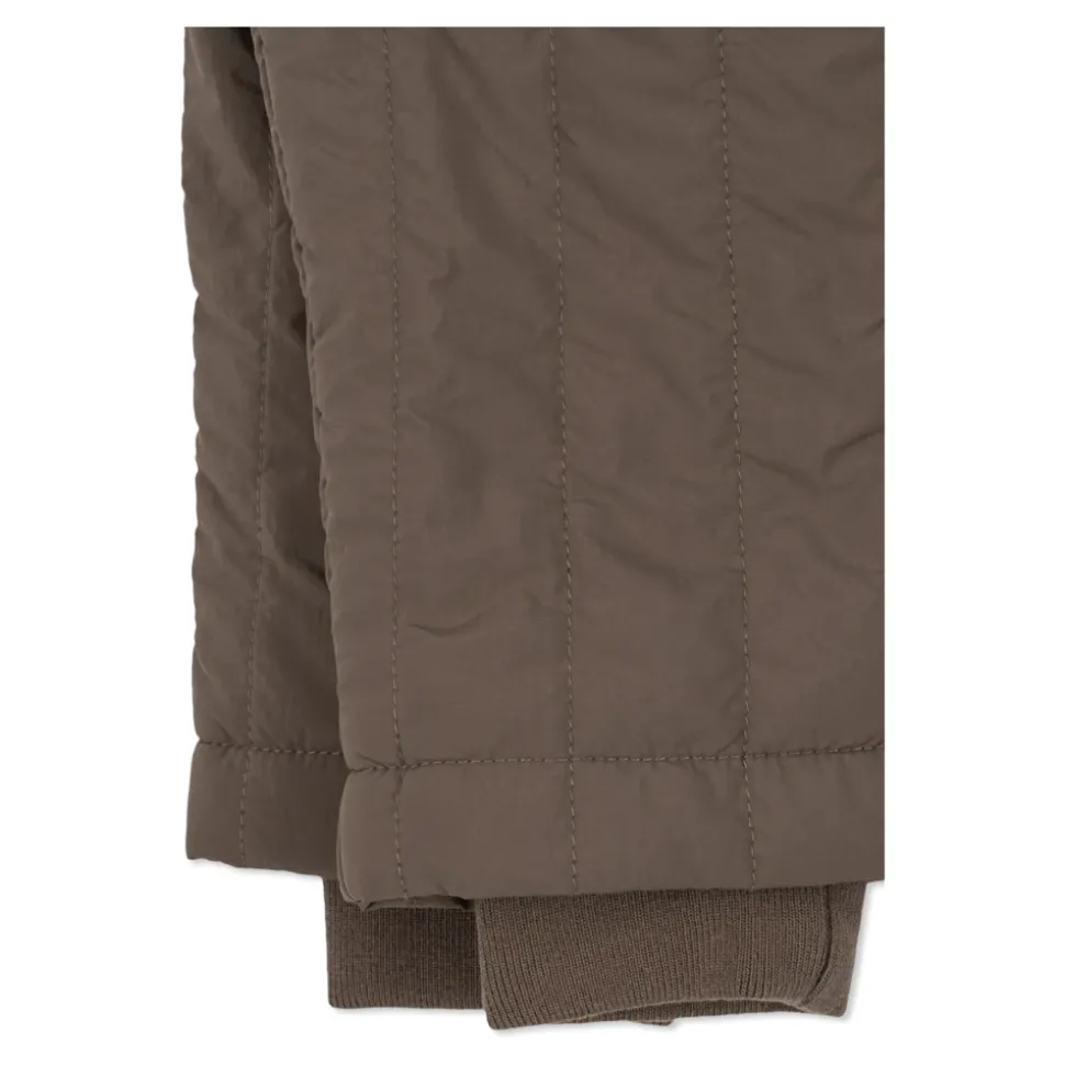 GEÏSOLEERDE BROEKEN van Konges Sløjd zijn het toonbeeld van discrete elegantie in de garderobe van kinderen. De eenvoudige, iets losse pasvorm combineert comfort harmonieus met esthetiek, terwijl de zichtbare elastische tailleband en enkelboeien niet alleen zorgen voor een uitstekende pasvorm, maar ook effectieve bescherming bieden tegen kou en wind. De uniforme, matte stof valt op door zijn subtiele gestikte effect, kenmerkend voor gewatteerde geïsoleerde materialen, en benadrukt de verfijnde eenvoud en functionele karakter van het ontwerp. De buitenlaag van nylon en de zorgvuldig geselecteerde vulling creëren een effectieve barrière tegen ongunstige weersomstandigheden. De zorgvuldige selectie van materialen en oog voor detail, kenmerkend voor de Deense ontwerper, resulteren in duurzaamheid en tijdloze charme, waardoor dit model een onmisbaar item is in de herfst-wintergarderobe van kinderen. WAAROM DIT PRODUCT KIEZEN? * Uitzonderlijk draagcomfort en pasvorm * Bescherming tegen de kou dankzij de gewatteerde, geïsoleerde structuur * Ongeëvenaarde duurzaamheid en oog voor detail * Modern, tijdloos ontwerp * Bewuste keuze – een merk dat bekend staat om zijn zorg voor het milieu