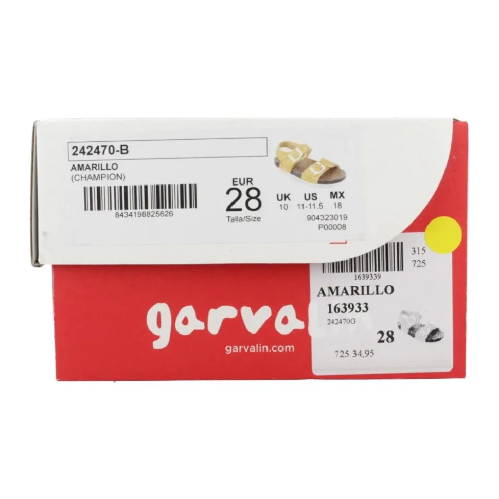 Ontdek de perfecte Garvalin sandalen voor zonnige dagen met deze levendige gele sandalen met een leuk print. Biedt comfort en stijl voor de kleintjes, deze sandalen van hoge kwaliteit hebben een antislip zool voor stabiliteit en een verstelbare sluiting voor een perfecte pasvorm. Ideaal voor buitenplezier, deze sandalen zijn een onmisbare accessoire in de garderobe van elk kind.