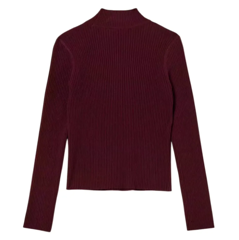 De Twinset geribbelde coltrui met ovale T combineert een getailleerd silhouet en een zachte, geribbelde tricot van viscosemix met een kenmerkend ovaal T-logo voor een verfijnde alledaagse laag. Belangrijkste kenmerken: Rood | Bordeaux | Viscosemix | Zachte afwerking | Elastische/stretch afwerking | Coltrui | Geribbelde tricot | Ovaal T-logo aan de voorkant | Afmetingen & pasvorm: Getailleerd silhouet | Samenstelling & verzorging: 72% Viscose | 28% Polyester | Handwas. Niet bleken. Niet in de droogtrommel. Strijken op max. 110 °C. Chemisch reinigen met perchloorethyleen. Plat drogen in de schaduw.