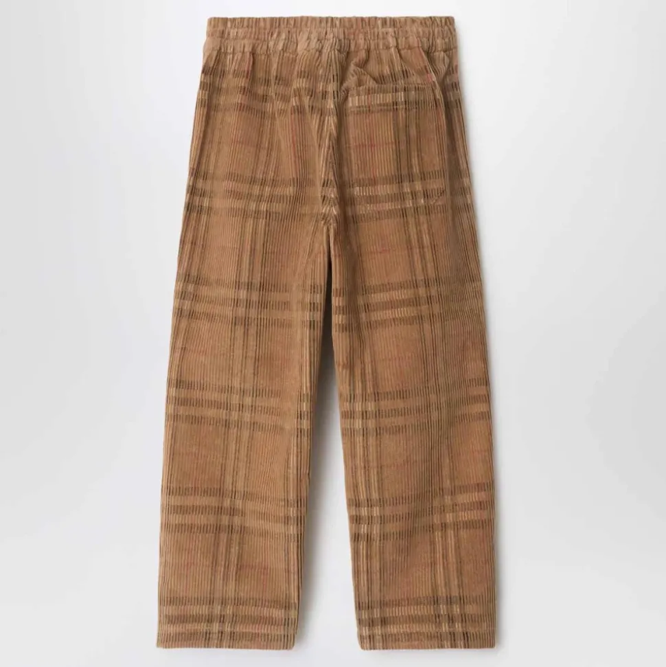 De geruite corduroy broek van Burberry is een katoenen broek met rechte pijpen, voorzien van een kenmerkende ruitprint en een zachte corduroy textuur, ontworpen voor veelzijdig dagelijks gebruik. Belangrijkste kenmerken: Beige | Katoen | Elastische tailleband | Steekzakken aan de zijkant | Opgestikte achterzak | Rechte pijp | Ruitprint | Corduroy textuur | Afmetingen en pasvorm: Rechte pijp | Samenstelling en verzorging: 100% katoen | Machinewas. Verwijderd houden van vuur.