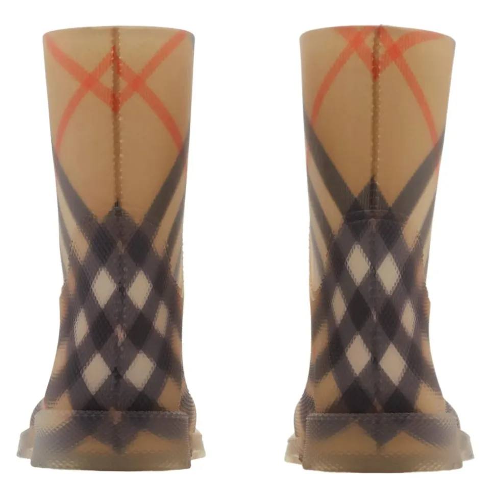 Verrijk de stijl van je kleine meid met deze Burberry geruite laarzen. Met een ronde neus, Burberry opschrift op de zool en gemaakt in Italië van 100% rubber.