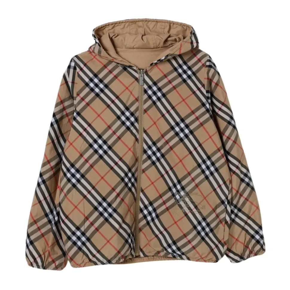 Blijf stijlvol en beschermd met deze lichtgewicht jas met capuchon van Burberry. Met een klassiek ruitpatroon is het een veelzijdige toevoeging aan elke garderobe.