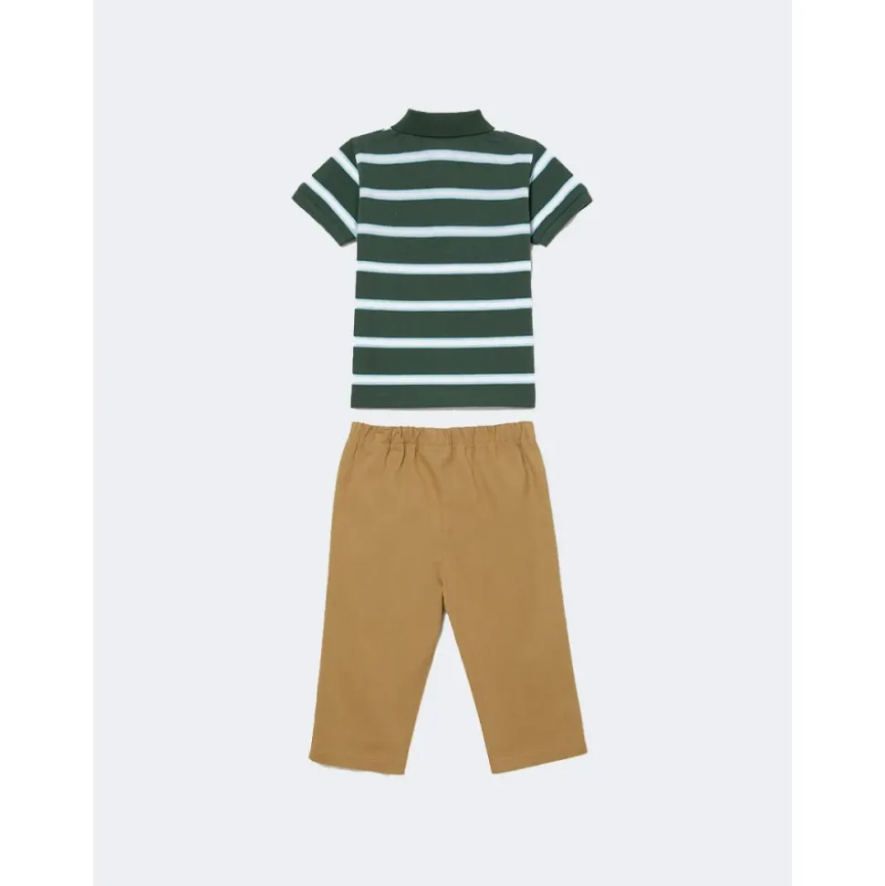 Geschenkset gestreepte polo met korte mouwen en krokodillenborduursel met lange piqué broek