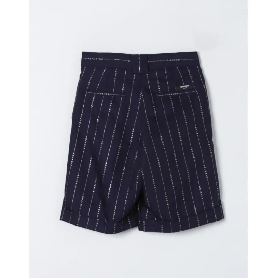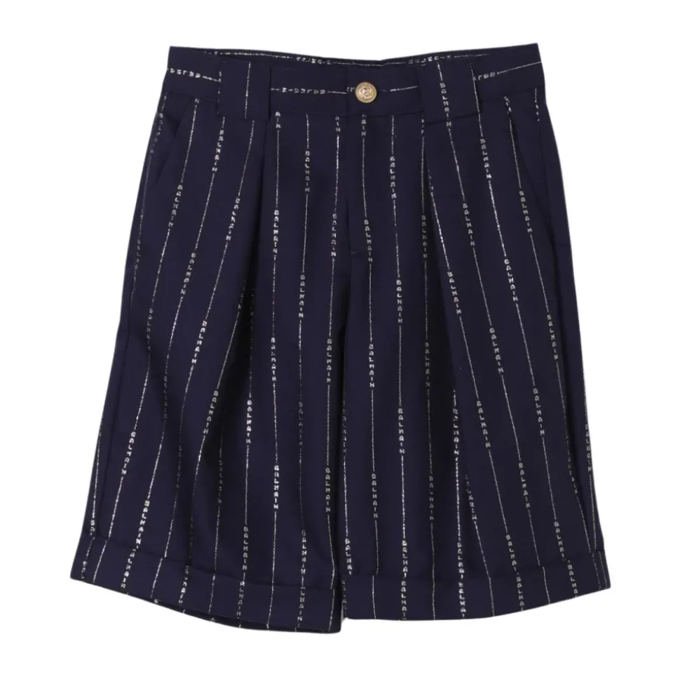 De Balmain gestreepte geplooide shorts met opgerolde zoom combineren een getailleerd, geplooid silhouet met een ontspannen, comfortabele pasvorm voor een verzorgde, alledaagse look. Belangrijkste kenmerken: Blauw | Gestreept patroon | Geplooid ontwerp | Opgerolde zoom | Afmetingen & pasvorm: Comfortabele pasvorm