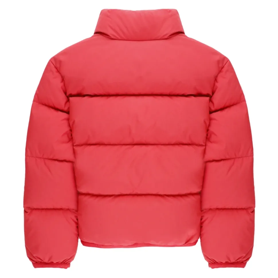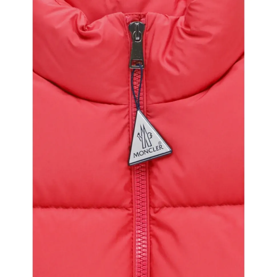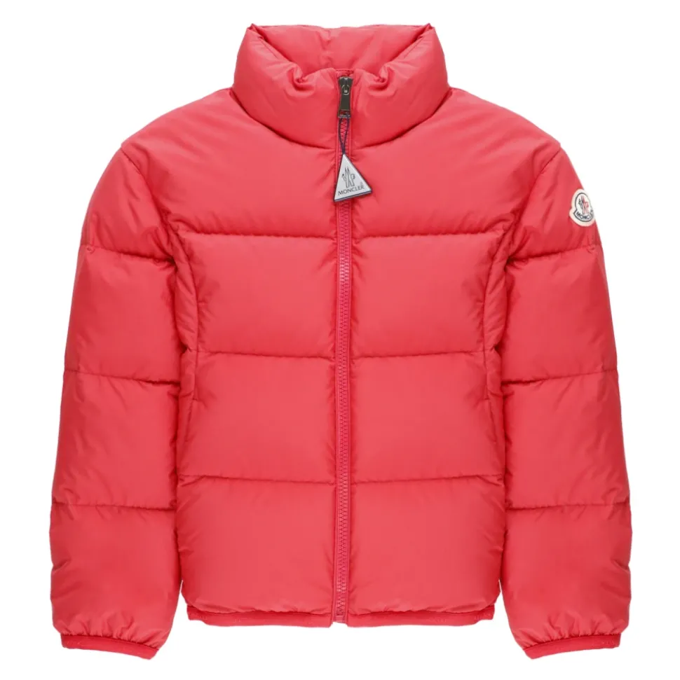 Blijf warm en stijlvol met deze fuchsia Moncler Enfant gewatteerde donsjas voor meisjes. Met een hoge kraag, lange mouwen met elastische manchetten, ritssluiting aan de voorkant, twee voorzakken met drukknopen en een logopatch op de linkermouw.
