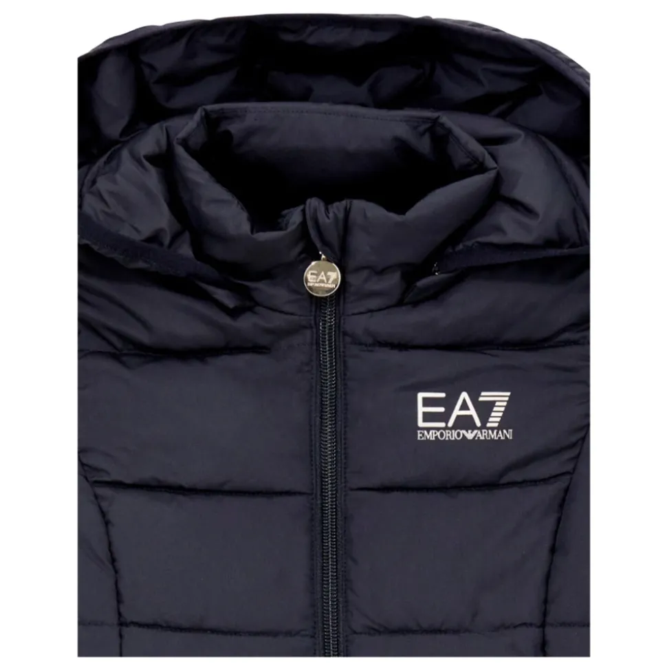 De Emporio Armani EA7 gewatteerde jas combineert een lichtgewicht gewatteerde buitenkant met synthetische isolatie voor compacte, gemakkelijk op te bergen warmte en betrouwbare bescherming tegen koud weer. Belangrijkste kenmerken: Zwart | Nero | Polyester | Thermische isolatie voor koud weer | Lichtgewicht constructie | Opvouwbaar en reisvriendelijk | gewatteerde buitenkant | Afneembare capuchon | Centrale ritssluiting | Schuine zakken met rits | Elastische manchetten en zoom | Zachte binnenvoering | Rechte snit | Hoge kraag | Gewatteerd stikselpatroon | Schuine geïntegreerde zakken | Modern gestroomlijnd silhouet | Afmetingen & pasvorm: Rechte pasvorm | Maakt natuurlijke beweging zonder beperking mogelijk | Samenstelling & onderhoud: 100% Polyester | Fijne was. Niet bleken. Niet in de droogtrommel. Niet chemisch reinigen. Strijken op lage temperatuur (tot 110°C), bij voorkeur met stoom. Volg de instructies op het waslabel.