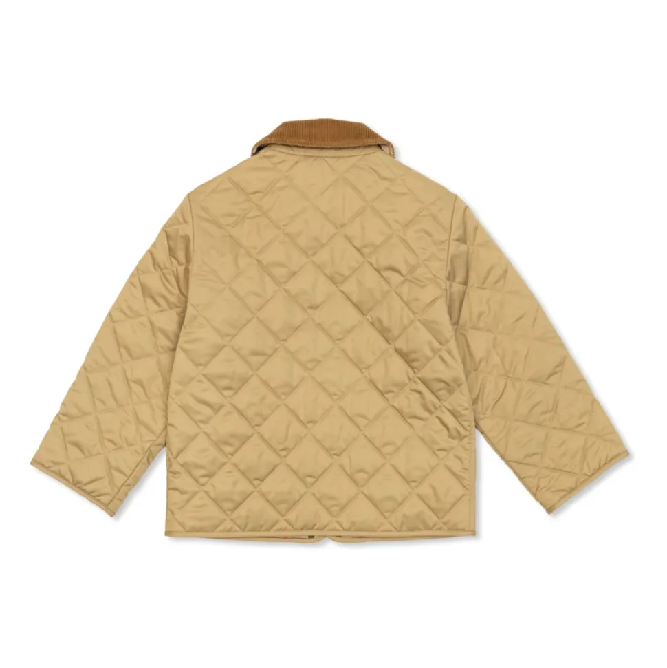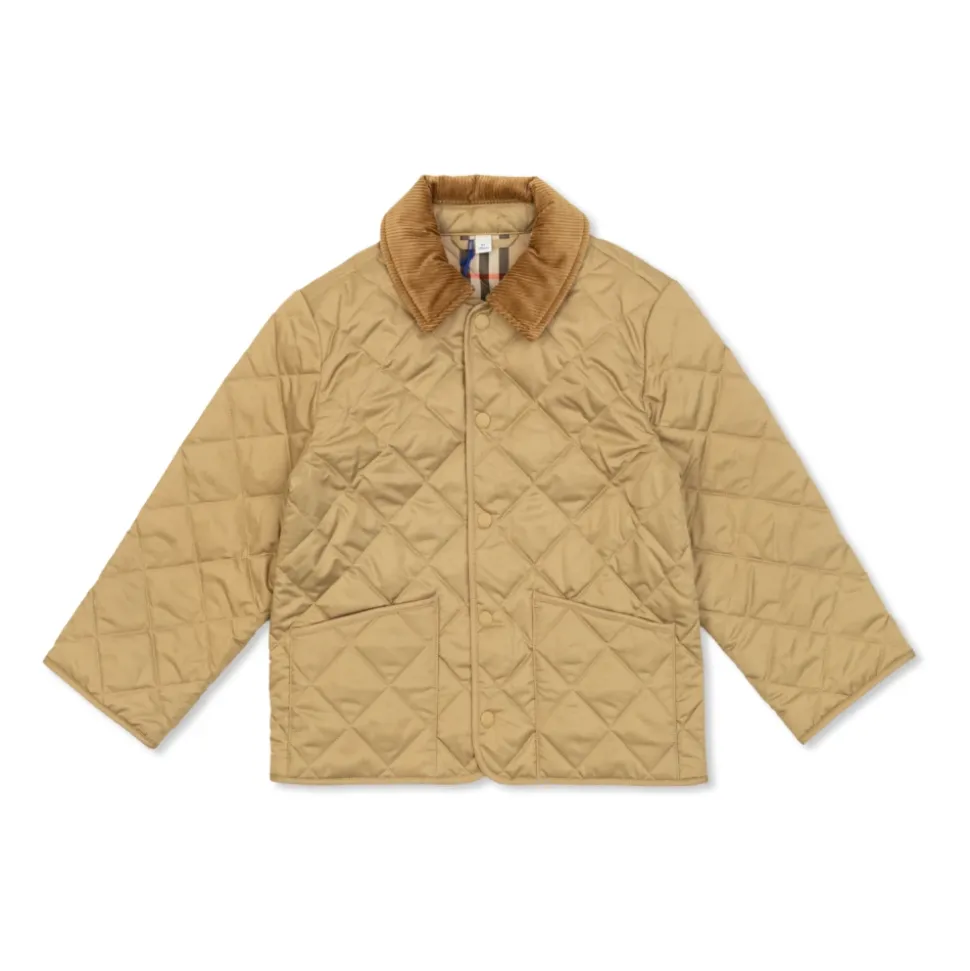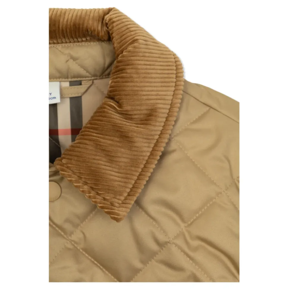 QUILTED JACKET van Burberry Kids is een voortreffelijke keuze voor een jonge dame die tijdloze elegantie waardeert. DE BEIGE KLEUR, perfect op maat gemaakte silhouet en subtiele glans van de buitenstof creëren een mix van verfijning en stijl. Licht, DIAMANT QUILTING over de hele jas benadrukt zijn luxueuze, klassieke karakter en harmonieert met het verfijnde detail – een GERIBBELDE CORDUROY KRAAG die een vleugje subtiele charme toevoegt. De relaxte pasvorm, die onder de heupen valt, zorgt voor bewegingsvrijheid tijdens dagelijkse activiteiten, terwijl de zachte vulling thermisch comfort garandeert. De hoogwaardige stof beschermt tegen onvoorspelbaar weer, en het vakmanschap weerspiegelt aandacht voor elk detail en belichaamt de luxe en traditie van de Britse kleermakersschool. WAAROM ZOU U DIT PRODUCT MOETEN KIEZEN? * Tijdloos, veelzijdig ontwerp geschikt voor verschillende gelegenheden * Onderscheidende diamantquilting die de elite stijl accentueert * Geribbelde corduroy kraag – een uniek visueel accent * Weerstand tegen lichte regen en wind * Luxueus vakmanschap ondertekend door het gerenommeerde merk Burberry Kids