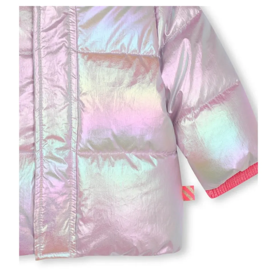 Blijf warm en stijlvol deze winter met de glanzende gewatteerde jas met capuchon van Billieblush voor meisjes. Deze elegante en functionele jas heeft een praktische ritssluiting en een unieke 3D-illustratie op de achterkant gemaakt van imitatiebont voor een originele touch. Compleet met een kwaliteitssymbool label, wordt deze jas gedistribueerd door Bimbivip, een gerenommeerd merk dat bekend staat om uitmuntendheid in kindermode. Volg de wasinstructies op het label aan de binnenkant van het kledingstuk. Gemaakt in China. Samenstelling: 100% Polyurethaan Coating, 100% Polyamide – Afwerking: 98% Polyester, 2% Elastaan – Voering: 100% Polyester – Vulling: 100% Polyester.