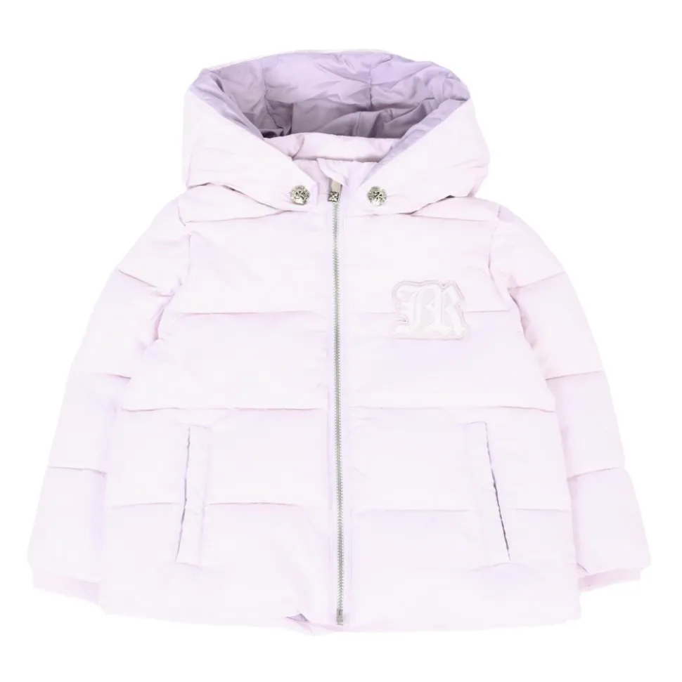 Blijf warm en stijlvol deze winter met deze lila John Richmond kinderjas. Deze zware, gewatteerde en doorgestikte donsjas heeft lange mouwen, een afneembare capuchon, een ritssluiting aan de voorkant en geribbelde manchetten. Het is versierd met een rubberen logo op de borst. Gemaakt van 100% polyester. Machinewas op 40°C.