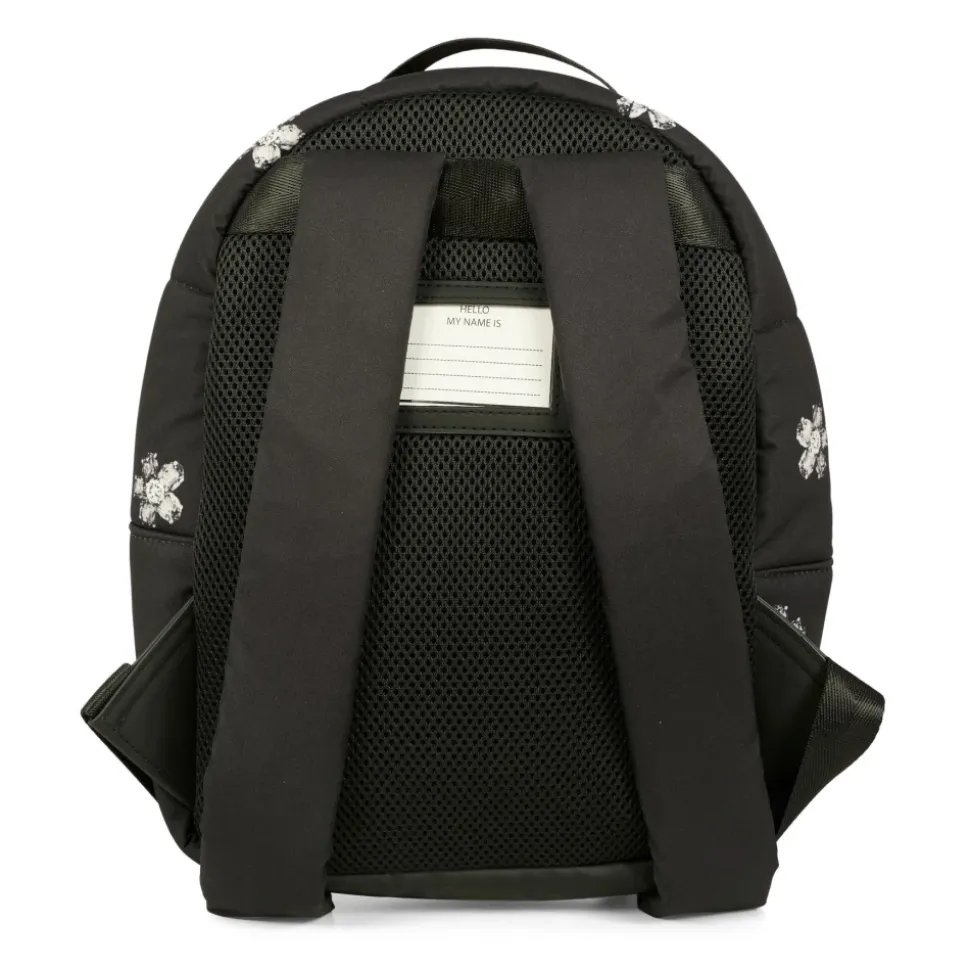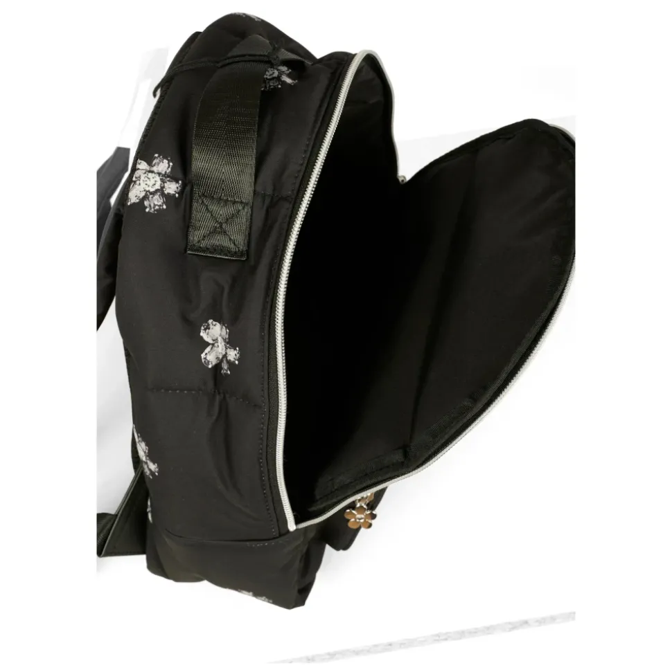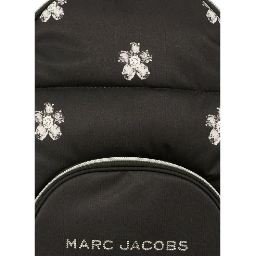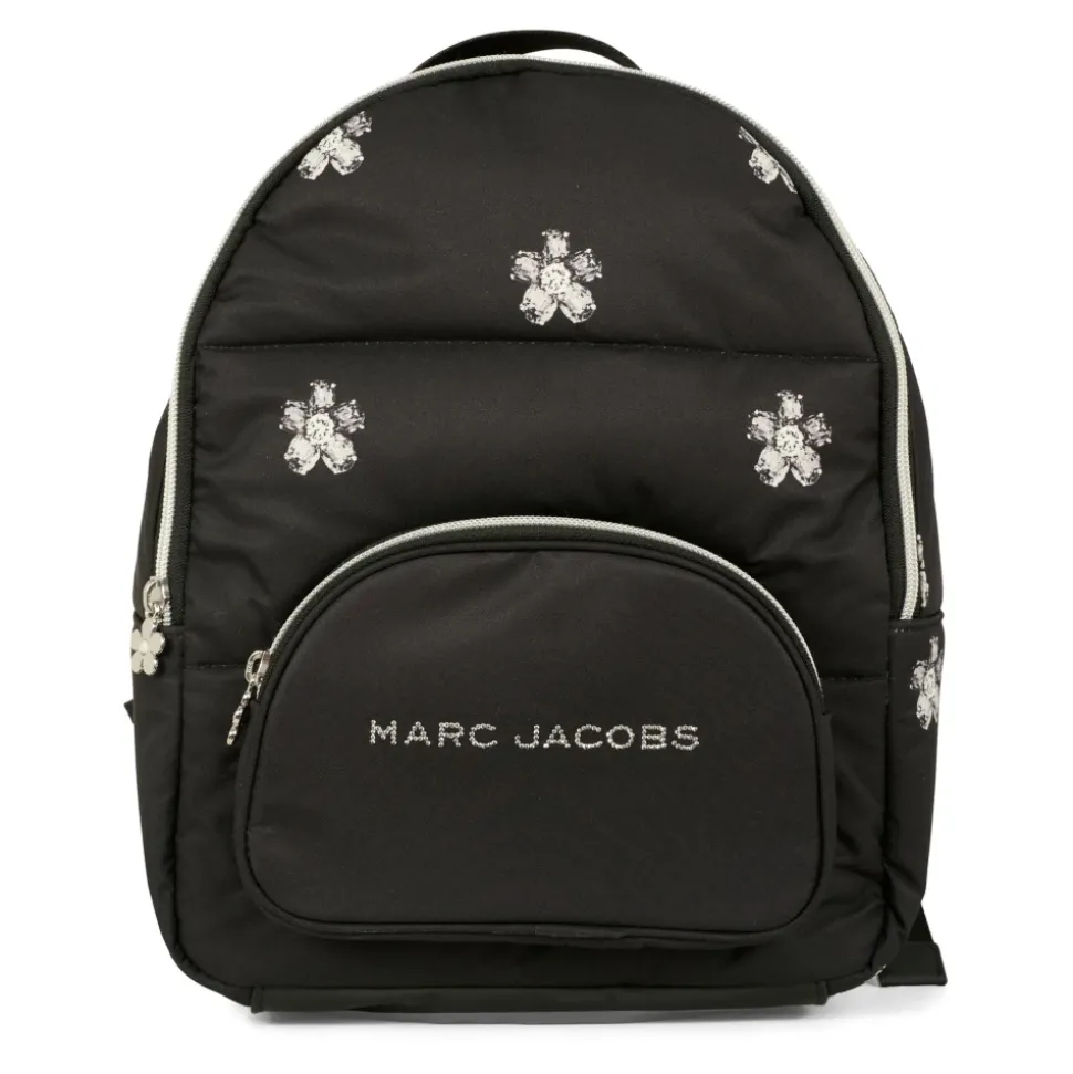 Laat je kleintje opvallen met deze stijlvolle zwarte rugzak van Little Marc Jacobs. Voorzien van een handvat, ritssluiting, voorvak met rits, gewatteerde achterkant, verstelbare schouderbanden en een label op de achterkant. Versierd met een all-over bloemenprint en een strass logo op de voorkant. Afmetingen: 23cm x 32cm x 12cm. Gemaakt van 100% polyester. Machinewasbaar op 30°C.