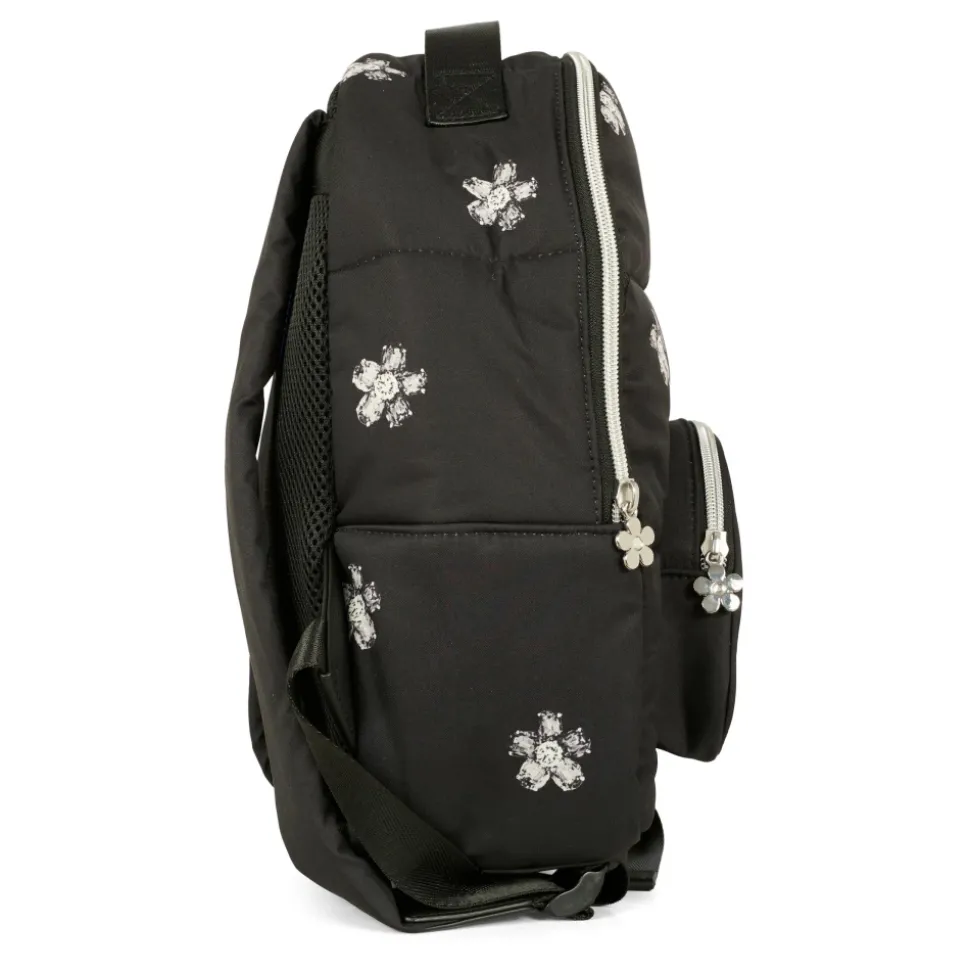 Gewatteerde Zwarte Bloemenprint Rugzak