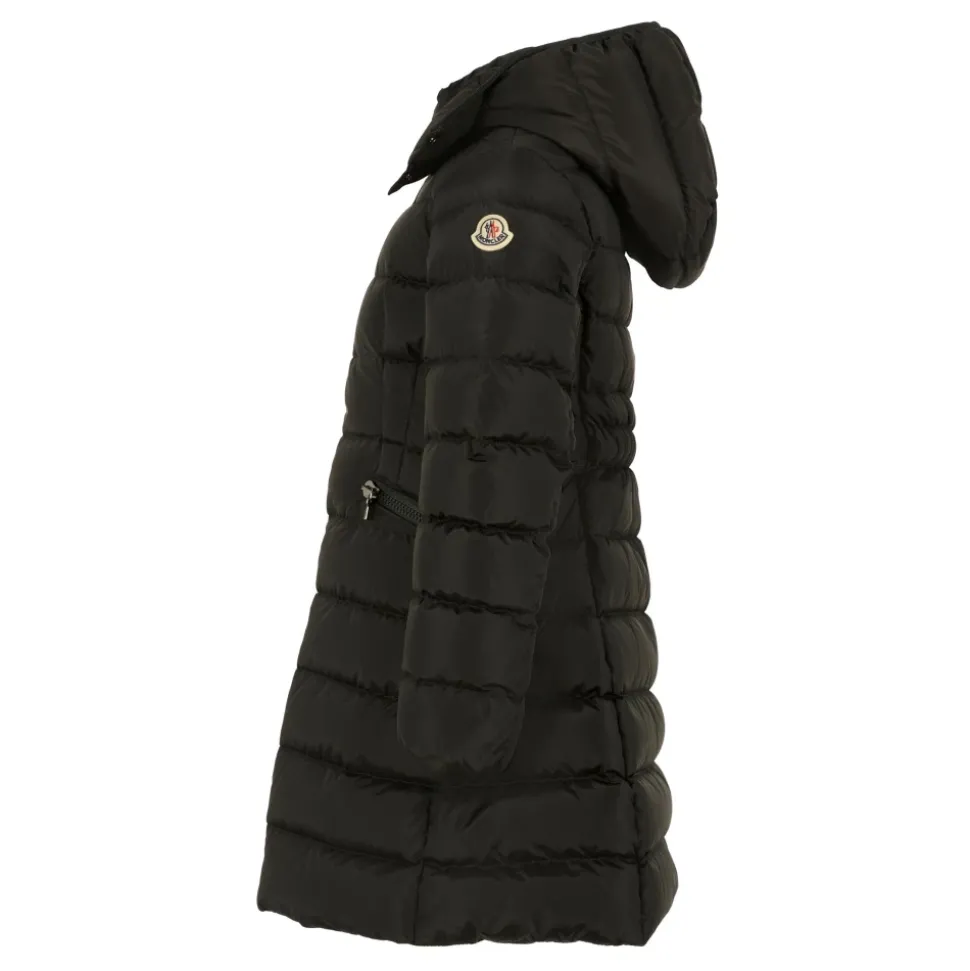 Houd je kleintje warm en stijlvol met deze Moncler zwarte winterjas. Met lange mouwen, een afneembare capuchon, een ritssluiting aan de voorkant, zijzakken met rits en elastische manchetten. Gemaakt van 100% polyamide, kan deze licht gewatteerde en doorgestikte jas worden gewassen in de machine op 30°C. Een iconische patch op de mouw voegt een trendy touch toe.