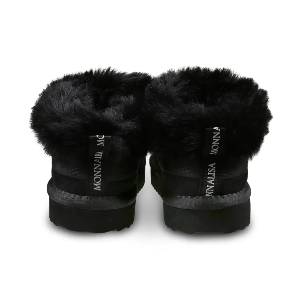Upgrade de stijl van je kind met deze Monnalisa zwarte gewatteerde instaplaarzen met rubberen zool en faux fur detail. Gemaakt van 100% stofmateriaal.