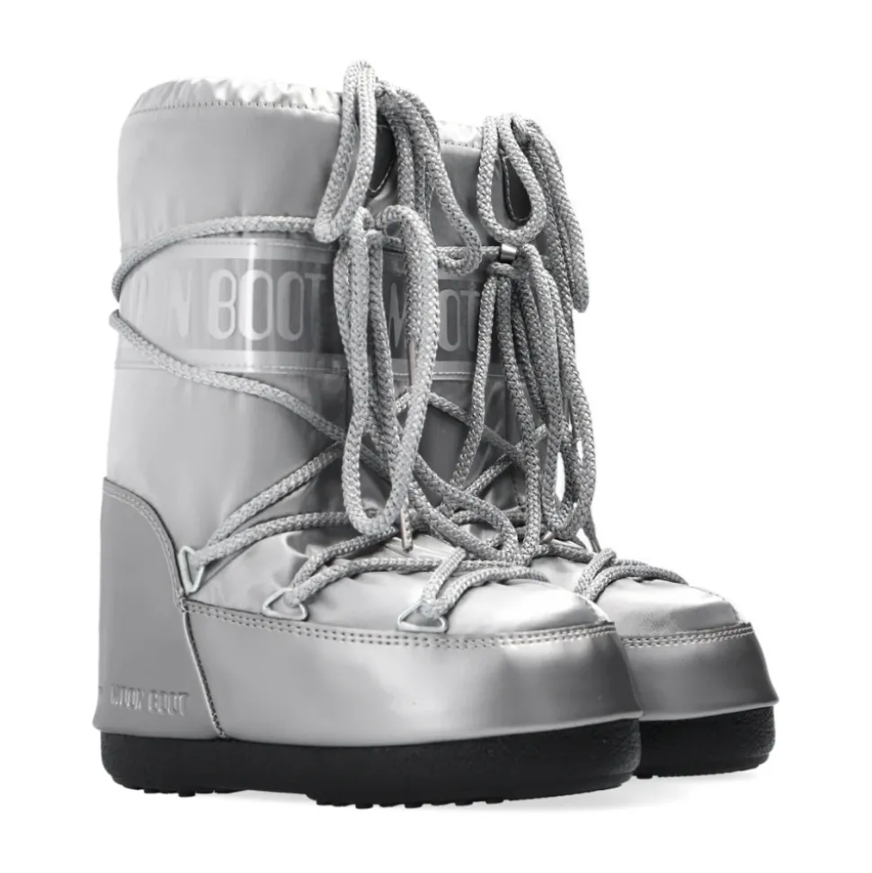 De Moon Boot Glance snowboots bieden een stijlvol en functioneel ontwerp met een waterdicht bovenwerk, perfect voor besneeuwde avonturen. Deze laarzen hebben een zwarte rubberen zool en vetersluiting voor een stevige pasvorm. Belangrijkste kenmerken: Zilver | Grijs | Satijn | Waterdicht | Vetersluiting | Aantrekkoorden aan de manchet | Patch | Embossed zwart logo |