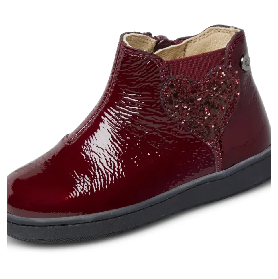 Naturino Glarny High 2 is een enkellaars van lakleer met een speels glitterhartdetail. Het combineert een gemakkelijke aan- en uitconstructie met een leren interieur en een gripvaste rubberen zool voor dagelijks gebruik. Belangrijkste kenmerken: Bordeaux | Lakleer | Antislip rubberen zool | Interne rits voor gemakkelijk aan- en uittrekken | Elastisch zij-inzetstuk voor een flexibele pasvorm | Afgeronde neus | Glitterhart patch op de zijkant | Schacht tot enkelhoogte | Samenstelling & onderhoud: Lakleer (bovenkant) | Leer (voering en binnenzool) | Rubber (loopzool)