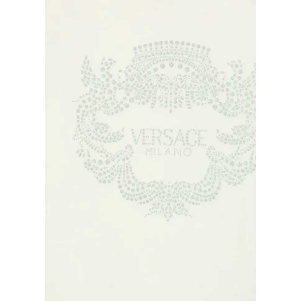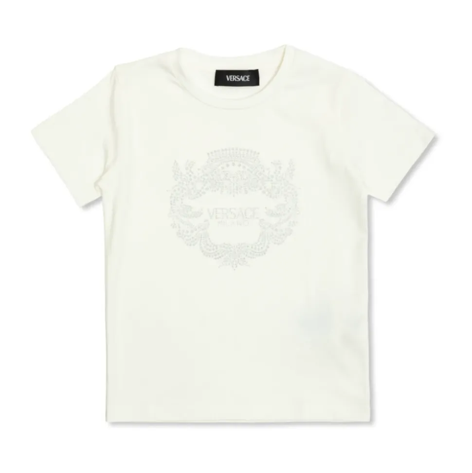Ontdek de Glitter Versace Milano Kinder T-Shirt, een perfecte mix van klassieke elegantie en modern design. Deze witte T-shirt is voorzien van een glinsterend Versace Milano motief, waardoor je kind zeker opvalt in stijl. Belangrijkste kenmerken: Wit | Katoen | Korte mouwen | Ronde halslijn | Glitter motief | Afmetingen en pasvorm: Klassieke pasvorm | Samenstelling en onderhoud: 100% Katoen | Machinewas koud, droogtrommel laag.