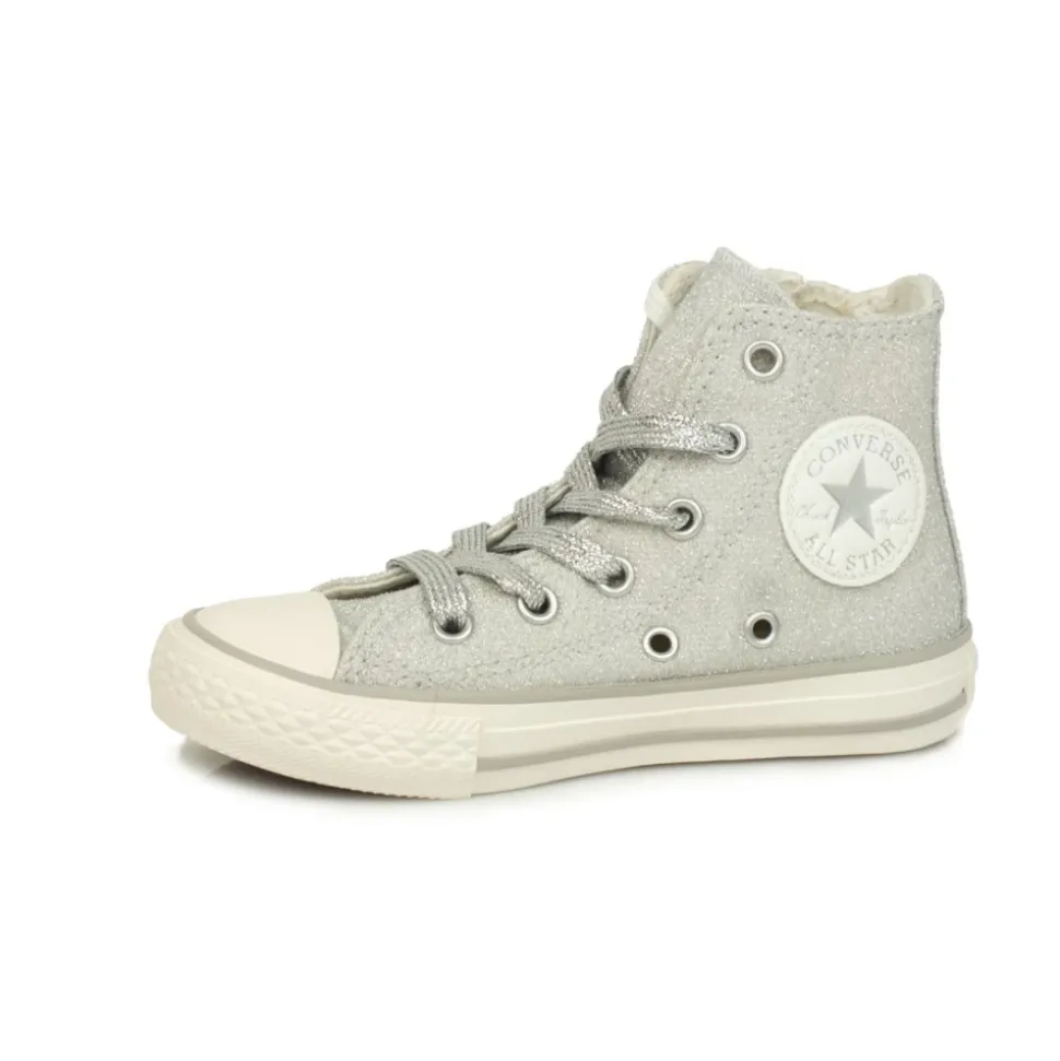 Converse Glitter Vetersneakers combineren een klassiek silhouet met een ronde neus met glitterdetails en een dubbele veter-/ritssluiting voor gemakkelijk aan- en uittrekken. Ontworpen voor dagelijks gebruik en geven een sprankelend accent aan casual looks. Belangrijkste kenmerken: Grijs | Grigio | Zilverw wit | Tessuto | Veters / Ritssluiting | Puntale: Tonda | Veters Glitter | Fantasia: Glitter | Samenstelling & verzorging: Tomaia: Tessuto | Interno: Tessuto | Suola: Gomma