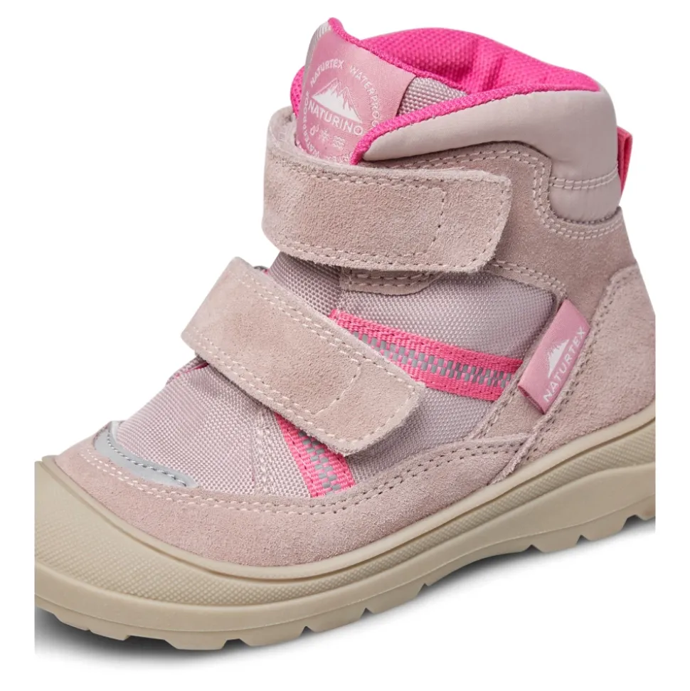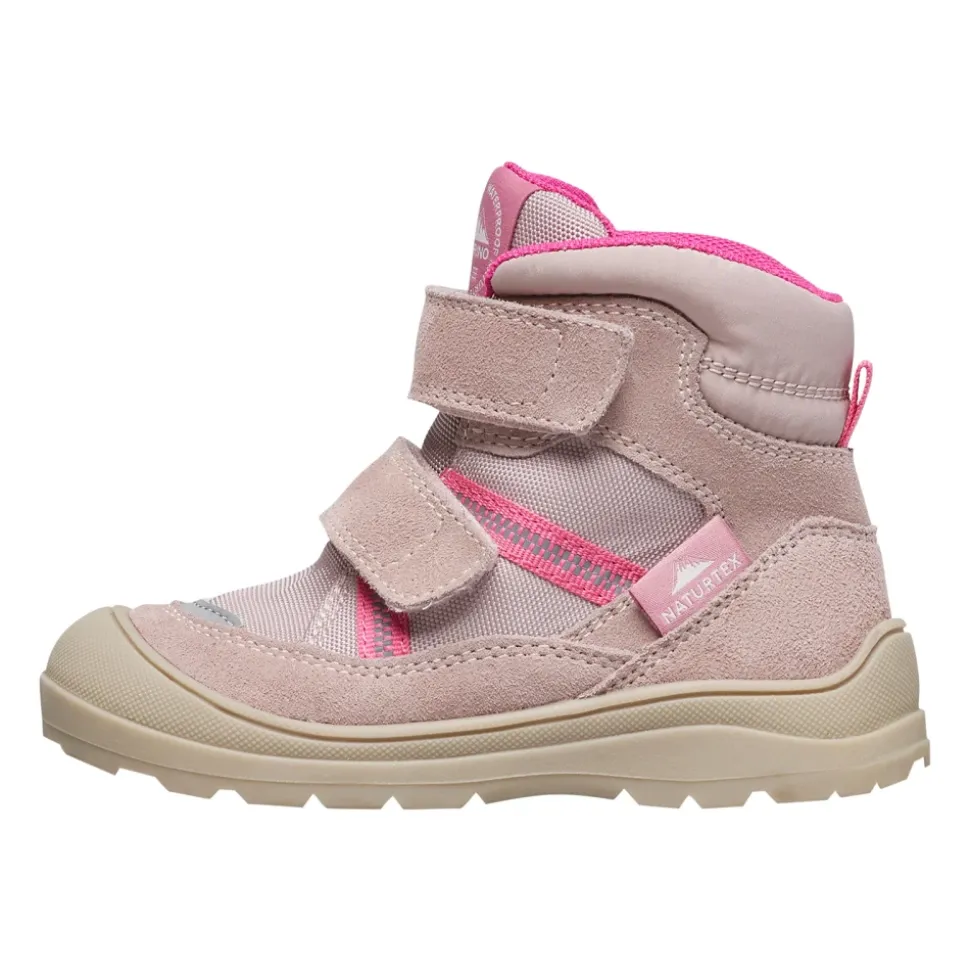 Naturino Graysy VL WP combineert een bovenwerk van suède en stof met een waterdicht membraan en een wollen binnenkant om de voeten warm en droog te houden in natte omstandigheden. Belangrijkste kenmerken: Roze | Suède en stof | Waterdichte stof | Wollen voering voor warmte | Dubbele klittenbandsluiting | Wollen voering en binnenzool | Custom rubberen buitenzool | Suède bovenwerk | Contraststiksels | Samenstelling & verzorging: Suède (bovenwerk) | Waterdichte stof (bovenwerk) | Wol (voering en binnenzool) | Rubber (buitenzool)