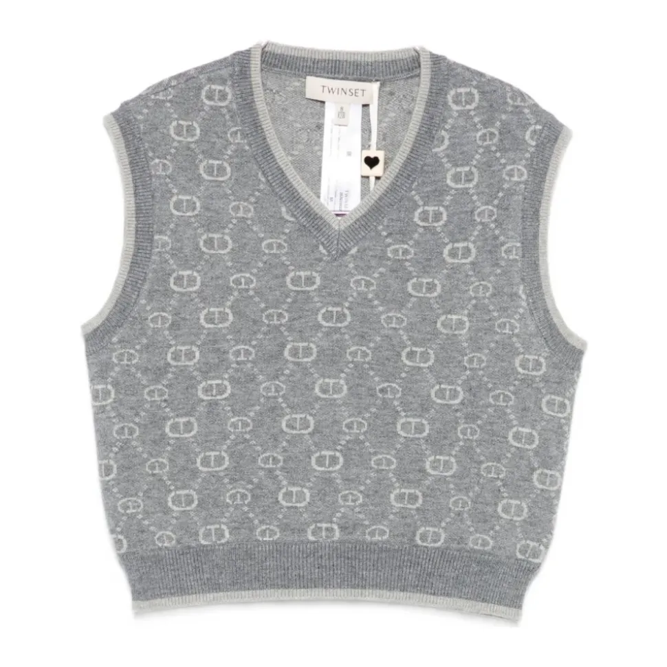 Geef de garderobe van je meisje een upgrade met deze Twinset Kids grijze monogram logo vest.